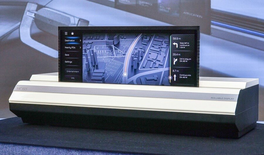 주행 상황과 이용 목적에 따라 디스플레이 크기를 조절할 수 있고, 부피를 최소화해 획기적인 차량 내부 디자인 개선이 가능해질 것으로 기대됩니다.