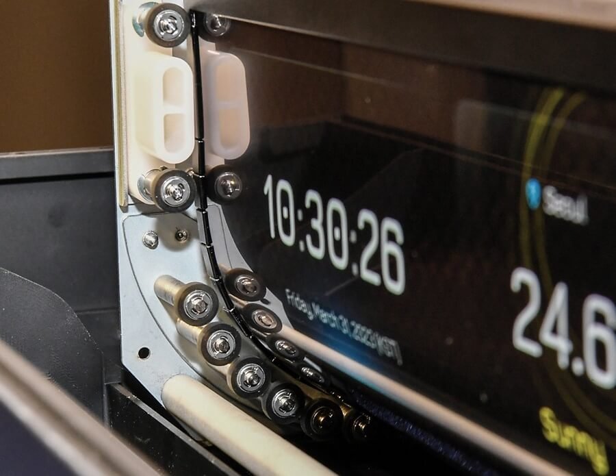 롤러블 디스플레이는 설치 공간을 최소화할 수 있는 것이 특징입니다. 부피를 최소화한 경량 구조가 핵심 경쟁력으로, 현재의 내비게이션이 위치한 자리에 장착하는데 필요한 깊이는 12cm에 불과합니다.