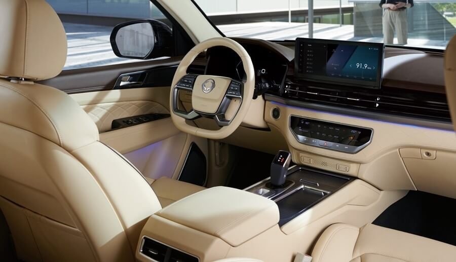 렉스턴 브랜드의 가장 큰 변화는 단연코 실내 인테리어인데요. 렉스턴 뉴 아레나 실내는 수평적 디자인 콘셉트를 활용하여 편안하면서도 모던하게 완성했습니다. 12.3인치 풀 디지털 클러스터와 12.3인치 인포콘 내비게이션, 슬림한 에어 벤트, 터치식 공조컨트롤러 등의 요소들이 조화롭게 어우러졌습니다.