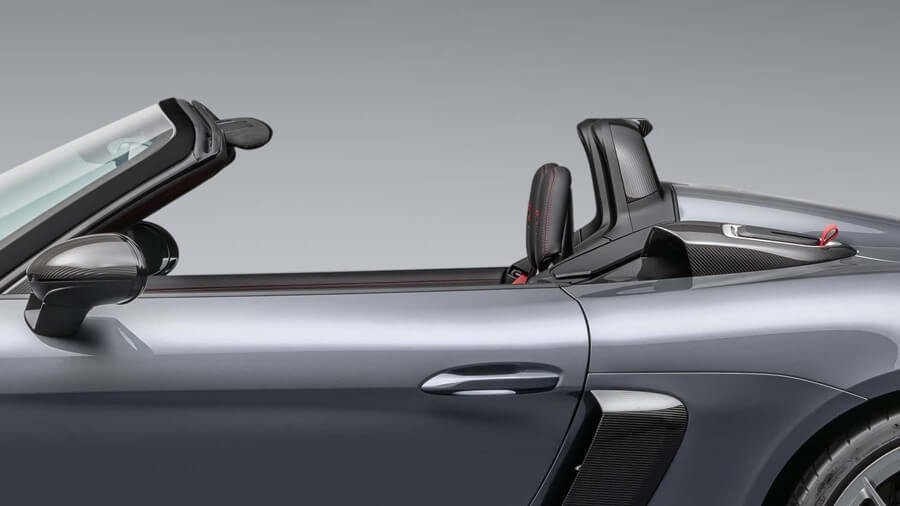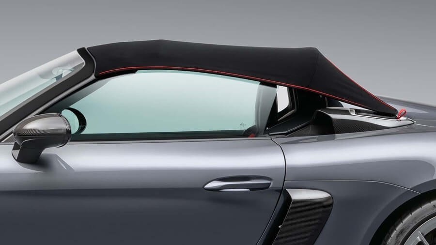 놀라울 정도로 콤팩트한 디자인의 소프트 탑은 선 세일(sun sail)과 웨더 디플렉터(weather deflector)로 구성됩니다. 두 가지 모두 완전히 분리가 가능하며, 차량 내부 또는 개별적으로 보관 가능합니다. 메커니즘을 포함한 전체 루프의 무게는 18.3kg으로, 718 스파이더보다 7.6kg, 718 박스터보다 16.5kg 가볍습니다. 기상 상황에 따라, 운전자는 전체 루프를 완전히 분리 후 별도 보관해 8kg을 줄일 수 있습니다.