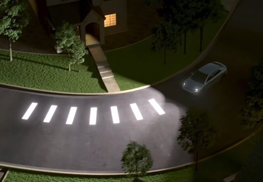 보행자의 안전사고도 능동적으로 예방할 수 있습니다. 외진 골목에서 카메라 센서가 보행자를 인식하고 차량이 멈추면 가상의 횡단보도를 도로에 띄워주는 방식입니다. 비상등이나 경적만으로 보행자에게 알리지 않고, 헤드램프로 소통하는 이른 바 '커뮤니케이션 라이팅' 기술이 현실화되는 셈이죠.