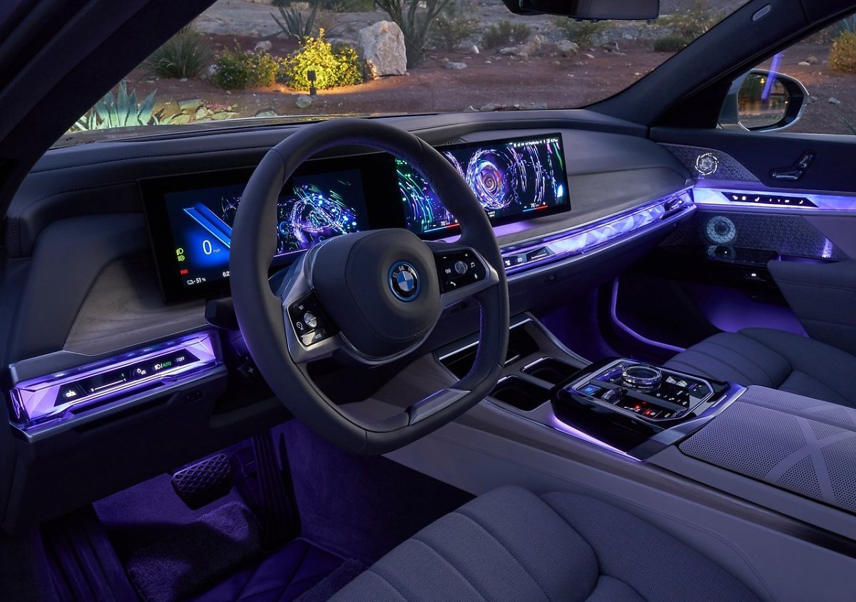 먼저 앞좌석에는 12.3인치의 인포메이션 디스플레이와 14.9인치의 컨트롤 디스플레이로 구성된 커브드 디스플레이, 크리스탈 디자인에 다양한 샤이 테크 개념을 적용한 BMW 인터렉션 바가 탑재됩니다. 앰비언트 라이트 역할을 하는 BMW 인터렉션 바는 마이 모드(My Modes)에 따라 실내 분위기를 전환하는 것은 물론, 승하차나 주행 상황에 따라 운전자에게 정보를 전달하며 운전자와 차량 간의 상호작용을 강화합니다. 여기에 BMW 최초로 계기판에 적용되는 증강현실 내비게이션은 운전자에게 보다 직관적인 경로 안내를 제공합니다.