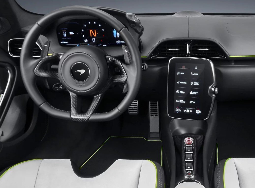 F1 드라이버 랜도 노리스가 컬러와 인익스테리어 사양 등을 일일이 선택해 만든 아투라의 전체적인 트림은 모험적 성향이 강한 비전(Vision)입니다. 인테리어 컨셉은 아방가르드하면서도 스포티한 매력이 특징이며, 나파 레더와 알칸타라로 마감했고, 심플하면서 밝은 오프피스트 액센트를 가미했습니다. 컬러는 시선을 확 끄는 오로라 블루입니다.