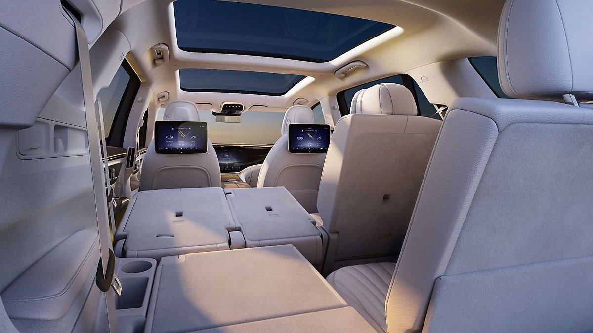 EQS SUV의 실내는 넉넉한 공간감과 더불어 모든 탑승객을 만족시키는 다양한 편의사양으로 럭셔리한 라운지의 느낌을 주는 인테리어가 특징입니다. 전동으로 조절 가능한 2열 시트는 최대 130mm 앞뒤로 조절이 가능하며 2열의 레그룸 공간은 830mm에서 960mm까지 확보돼 탑승객에게 편안한 공간을 제공합니다. 또한 2개 좌석이 탑재된 3열 시트를 선택사양으로 제공하여 최대 7인까지 탑승할 수 있습니다. 트렁크 공간 또한 넉넉해 최대 2,100리터까지 확장이 가능하며, 3열 시트를 접으면 5명이 타고도 4개의 골프백을 실을 수 있습니다.