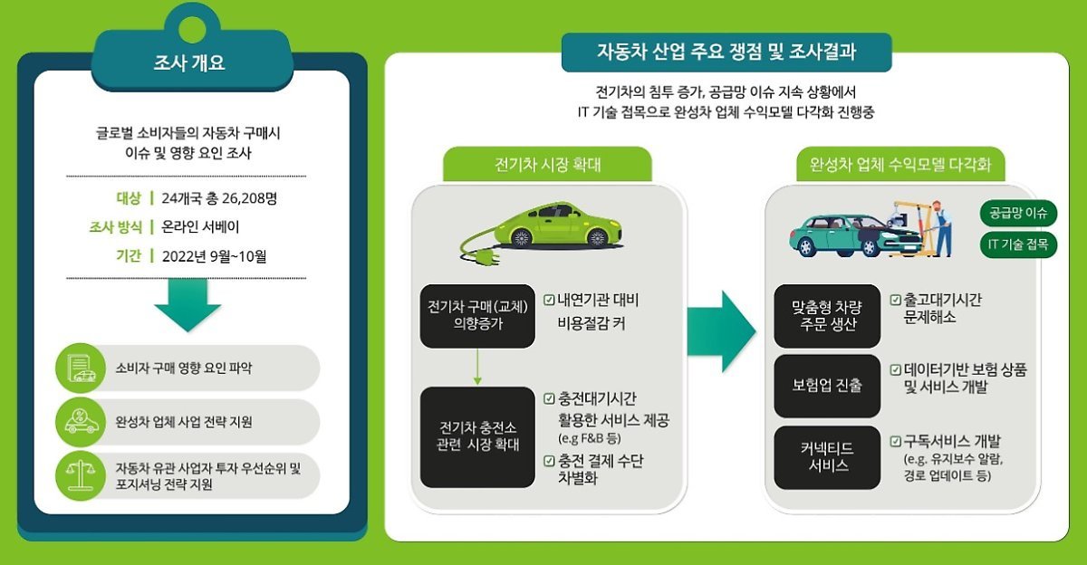 김태환 한국 딜로이트 그룹 자동차 산업 리더는 “전기차 저변 확대를 위해서는 전기차의 안전성에 대한 소비자의 신뢰 확보와 함께 충분한 전기차 충전 인프라 확보가 시급한 상황”이라면서 “완성차 업계는 신차 구매 시 주요 결정 요인으로 자리 잡은 고객 경험의 차별성 확보를 위해, 최종 고객에 대한 이해 노력과 함께 고객 니즈에 맞는 서비스를 지속적으로 개발하고 제공해야 될 것”이라고 말했습니다.