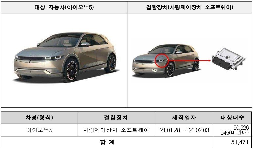 현대자동차에서 제작, 판매한 아이오닉5 5만1,471대(판매이전 포함)는 차량제어장치 소프트웨어의 오류로 차량 문을 열 경우 주차브레이크(P)가 해제되고, 이로 인해 경사지 주차 시 차량이 움직여 사고가 발생할 가능성이 확인되어 자발적으로 시정조치에 들어갑니다. 해당 차량은 2월 23일부터 현대자동차 하이테크센터 및 블루핸즈에서 무상으로 수리(소프트웨어 업데이트)를 받을 수 있습니다.