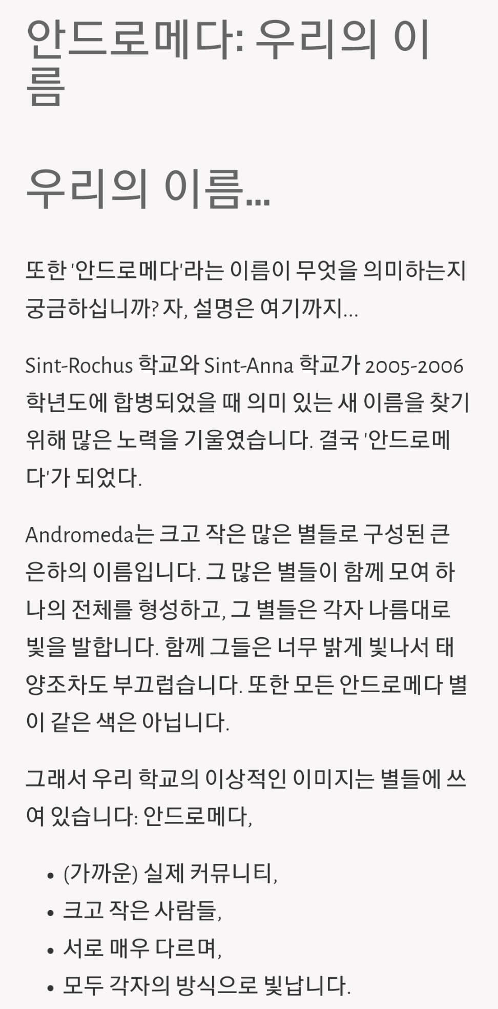 구글맵이 친절히 알려준 앤트워프의 안드로메다는 공교롭게도 어느 초등'학교'였다.늘상 써왔던 '안드로메다행'의 의미에 익숙해져서 그런지, 안드로메다와는 전혀 연관성이 없어 보이는 곳.