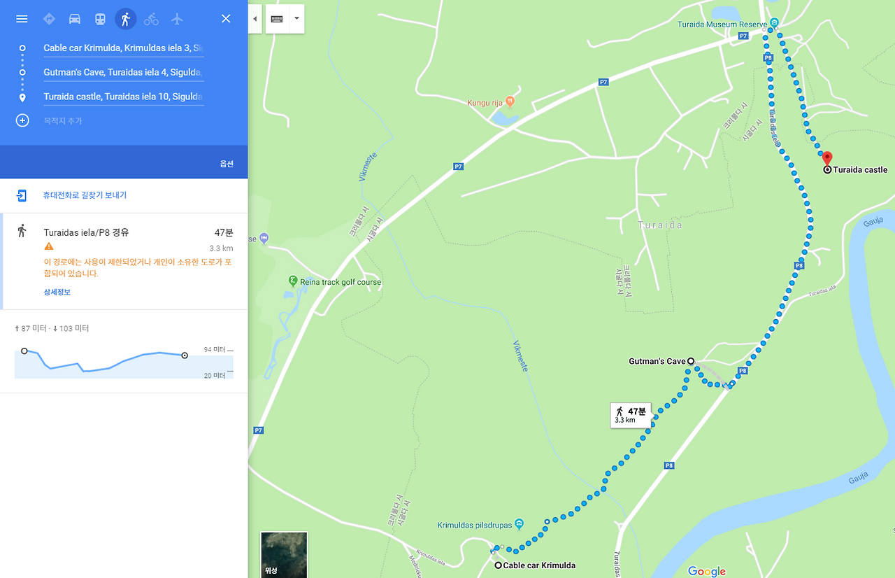 투라이다 성과 박물관을 둘러보고 관광을 마친 뒤, 숙소가 있는 리가까지 한 방에 가려면 근처에서 버스를 타야 했다. 우리가 타야 하는 버스는 4시쯤 운행하는 막차였고 만약 그 차를 타지 못하면, 다시 그 산길을 내려가 케이블카를 타고 기차역까지 가는 수밖에 없었다.