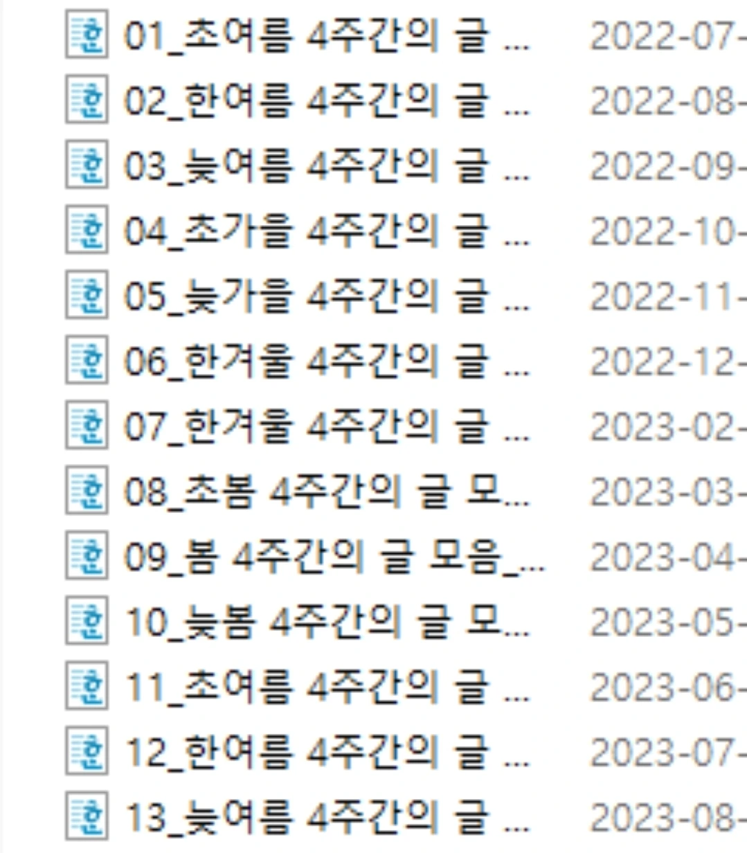 파일명을 계절에 따라 짓다보니, 저런 모양으로 쌓였다