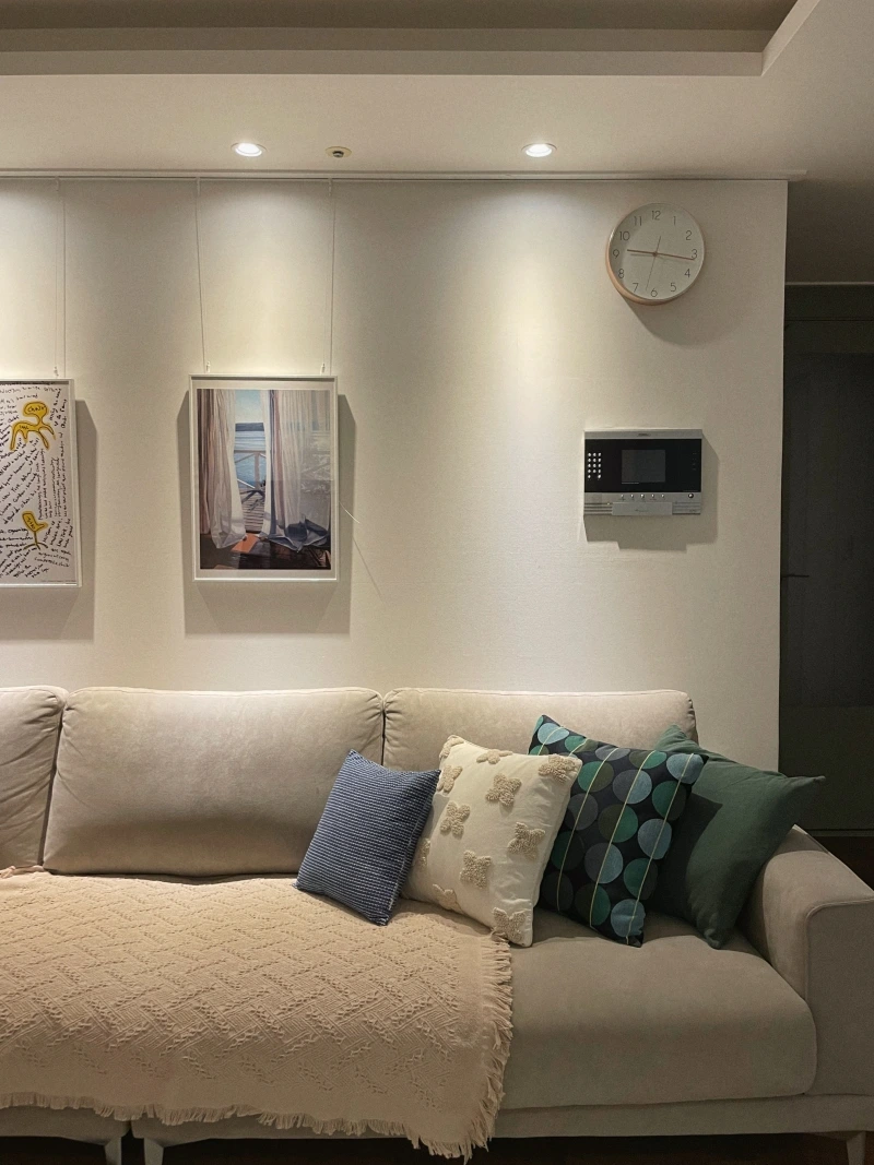 쿠션들도 다 치우고 그림들도 다 치워버린다면 어떨까. 상상해 봤더니 우리 집 같지가 않았다. 거실에서 가장 많은 시간을 보내는 나에게 꼭 맞는 거실이란 이런 것이기 때문이다. 눈길 닿는 곳에는 좋아하는 그림이 있고, 언제든 베고 기대며 몸의 긴장을 풀어주는 쿠션이 가득한 소파.