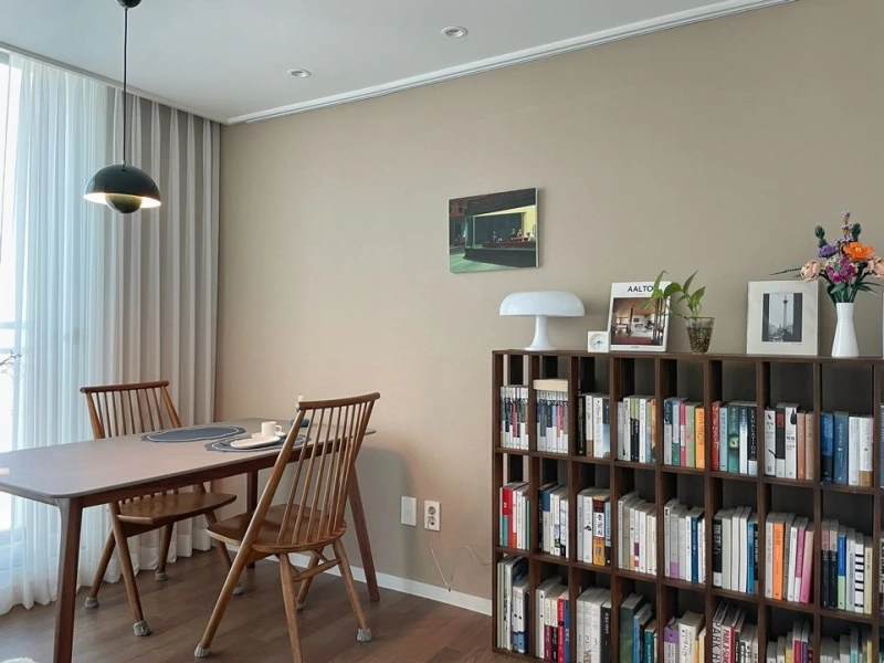 그럼에도 불구하고 이 방에서 머무는 시간은 극히 적은데, 다이닝룸이라고는 명명하였으나 대부분의 식사 시간은 TV가 있는 거실 테이블에서 보내게 되기 때문이다. 식탁에 앉아 책을 읽기에는 너무 불편해서 결국 책장에서 책을 꺼내서 거실 소파로 가기 때문에 서재라 하기에도 약간 민망하다. 또 다른 이유 중 하나는 우리 집에서 유일하게 이 방만 북향인 터라 해가 드는 시간이 적기 때문이다. 퇴근하고 집에 돌아오면 보통 해가 진 시간이라 집에서 햇살을 받을 수 있는 유일한 시간인 주말에는 널찍한 거실에서 시간을 보내게 된다.