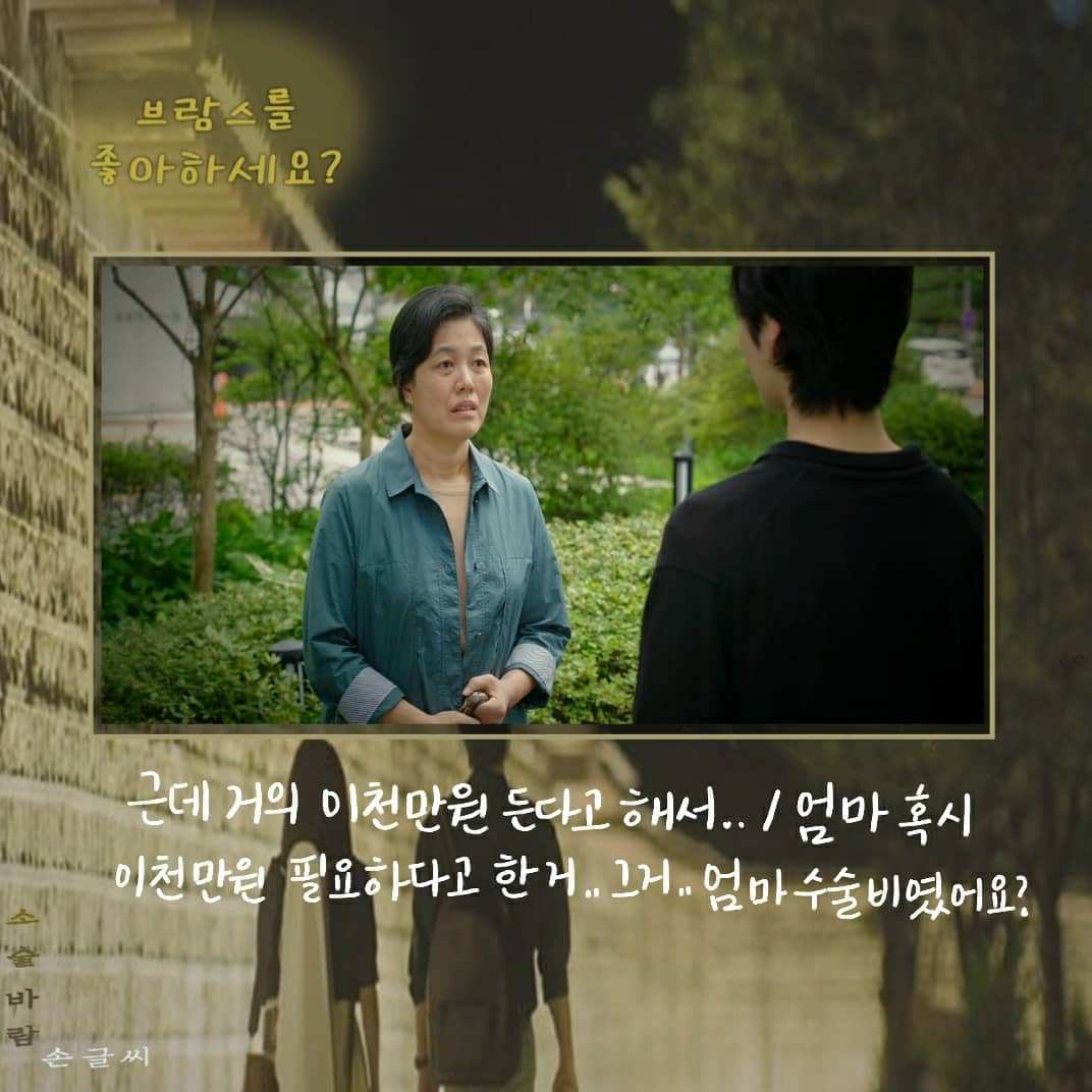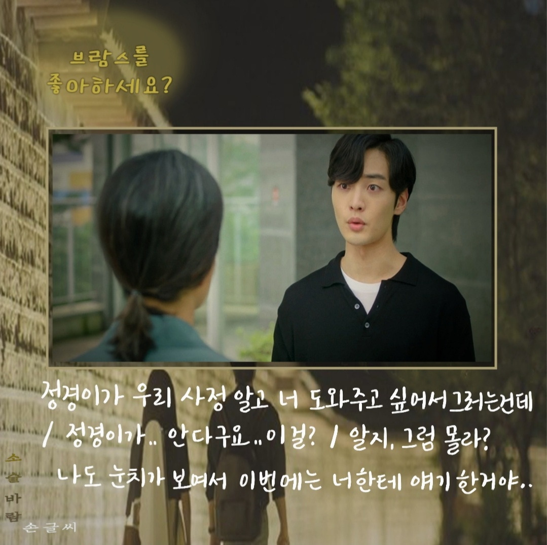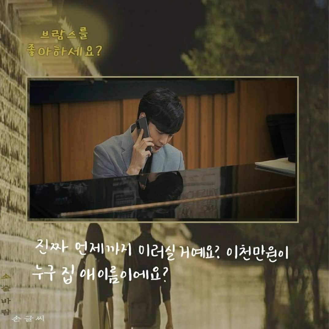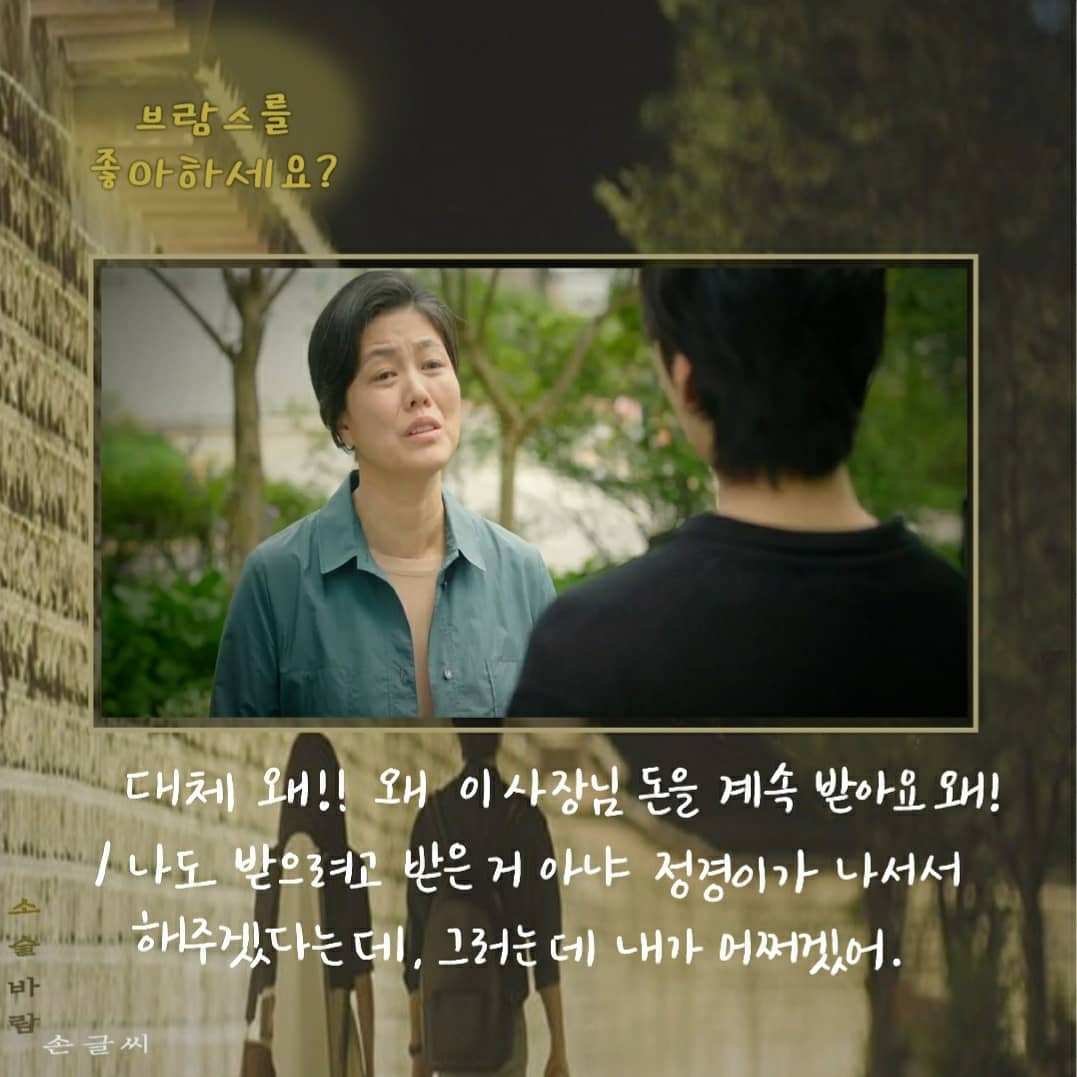 송아의 지도교수는 오로지 인맥 때문에 송아에게 대학원 진학을 권유한다. 4년 동안 지켜봤는데 다른 애들보다 음악을 늦게 시작해서 실력이 별로 안 늘어서 마음이 갔다고 한다. 마음에도 없는 말을 하는 이교수의 대사로 <청춘 기록>의 대사가 떠올랐다.