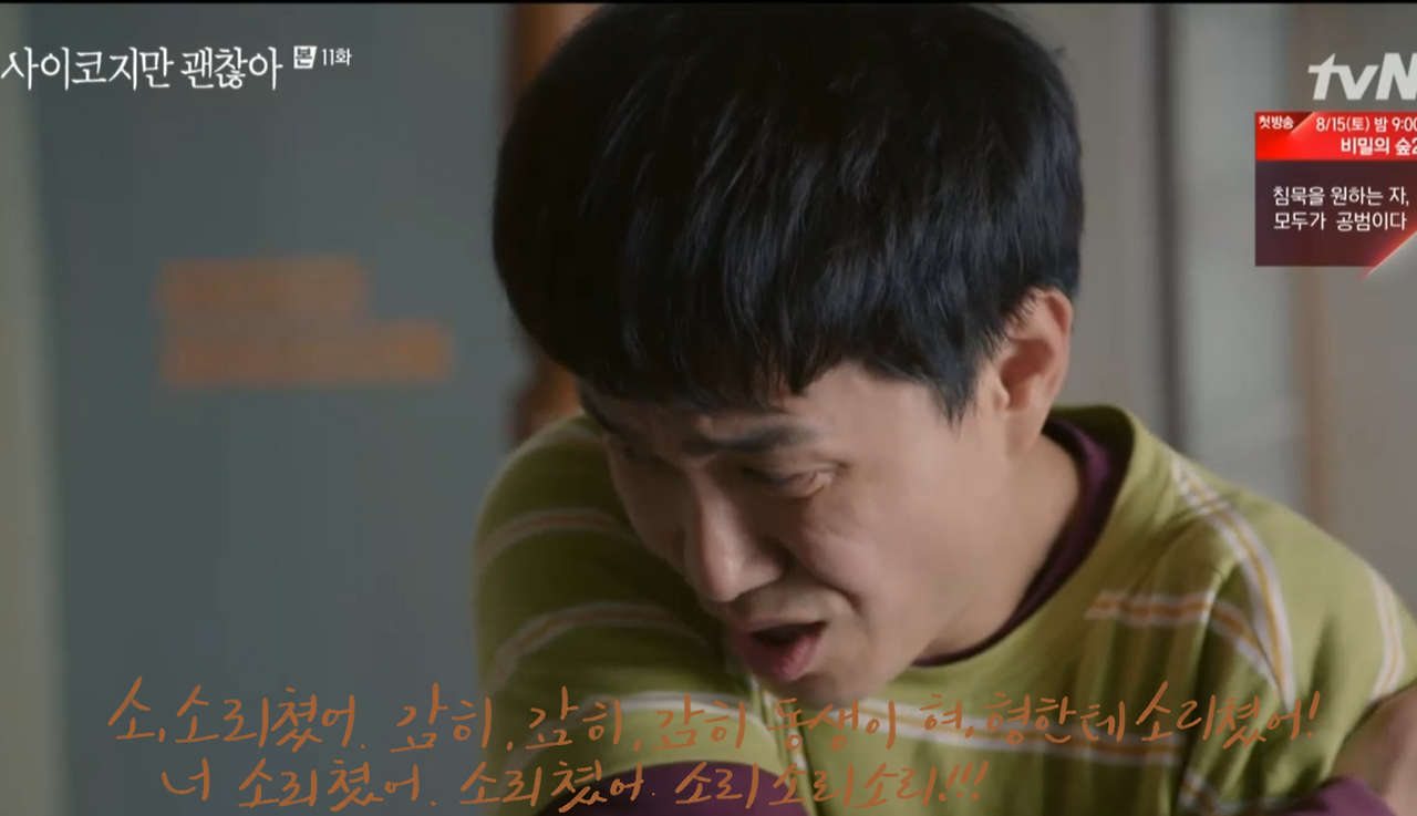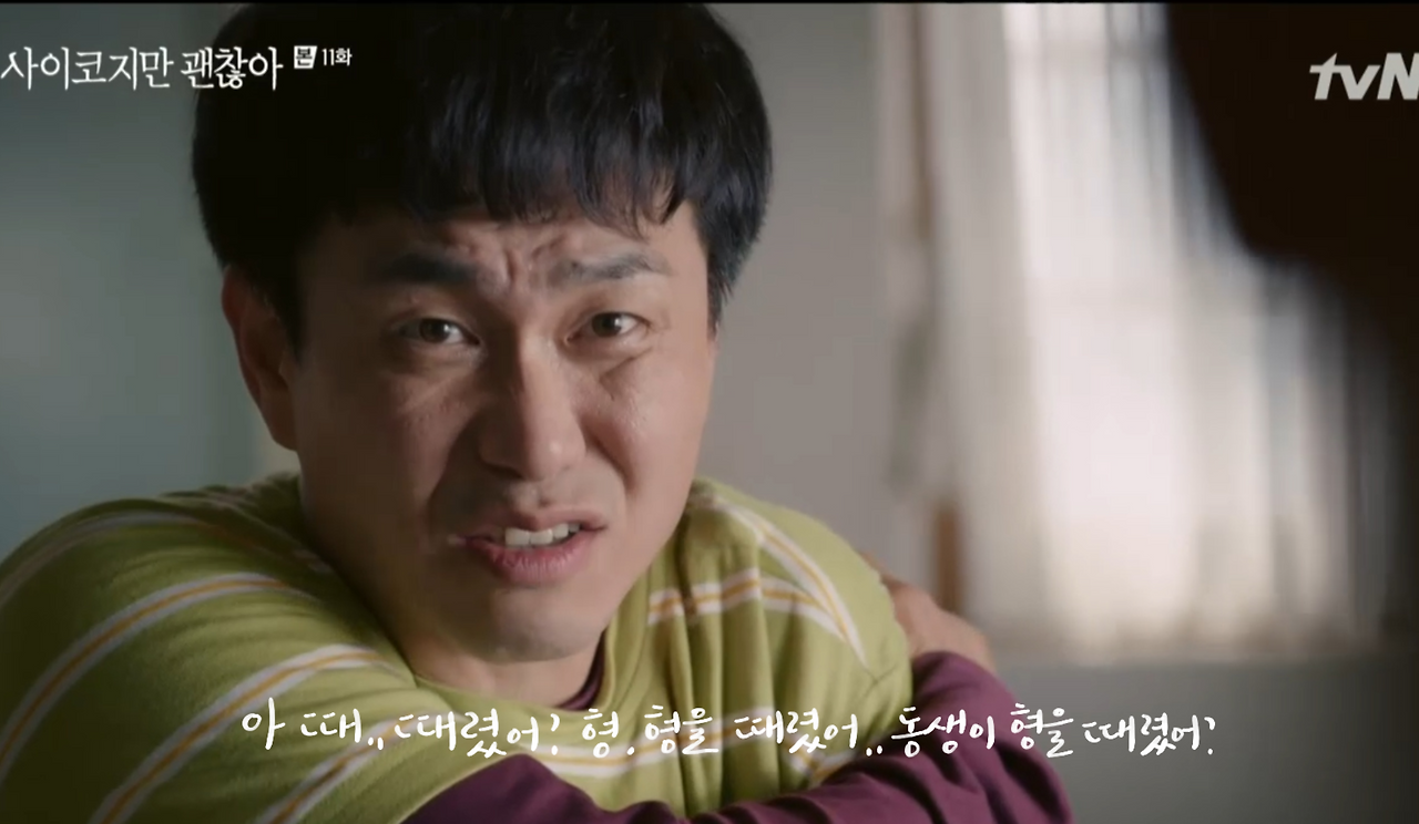 상태는 강태와 '처음'으로 치고받고 싸워요. 나의 동생인 강태는 언제나 상태를 '보호'해주고 있었기에 둘은 이렇게 싸우지 않았죠. 강태가 늘 참았으니까요.