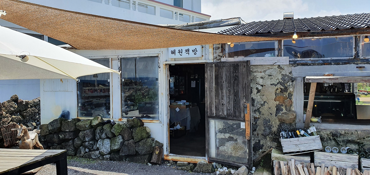 전복을 먹고 근처에 있는 책방에 갔다. 제주엔 독립서점이 참 많아서 보는 재미가 쏠쏠하다. 혜원 책방은 중고 가격으로 파는 책과 정가로 파는 책이 구분돼 있고 독특한 건 무인으로 운영되는 곳이었다. 제주 이주를 하게 된다면 책방 운영과 빈티지 숍을 운영하고 싶다. 나의 시선으로 선택한 책들을 서가에 꽂아두고 한쪽엔 빈티지 옷을 저렴한 가격에 판매한다면 생각보다 장사가 잘 될 거 같다.