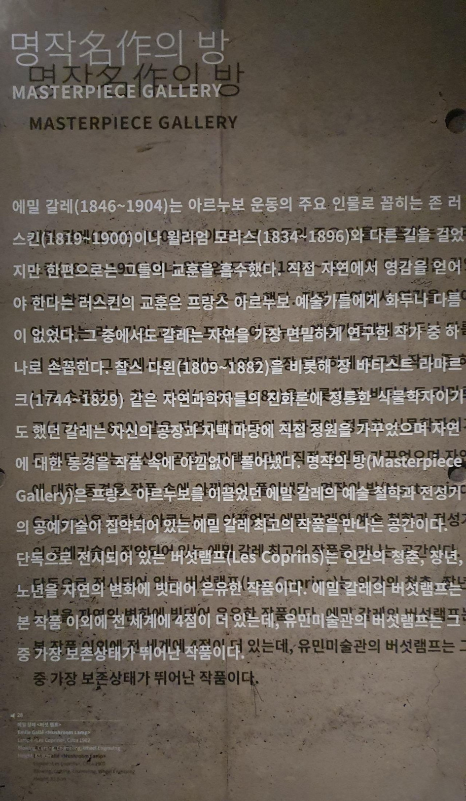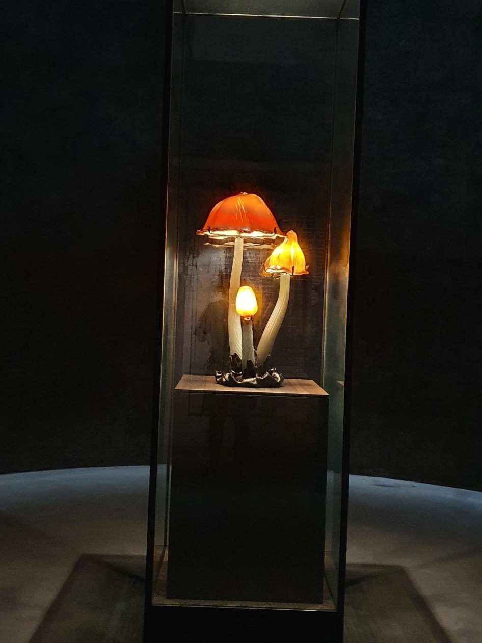 유리공예 전시관인데 전시장은 지하에 위치해 있다. 신기했던 작품을 사진으로 남겼다. 청년, 장년, 노년의 삶을 버섯으로 표현한 작품이다. 제일 큰 버섯이 청년을 상징하는 것인지 노년을 상징하는 것인지 잘 모르겠다.
