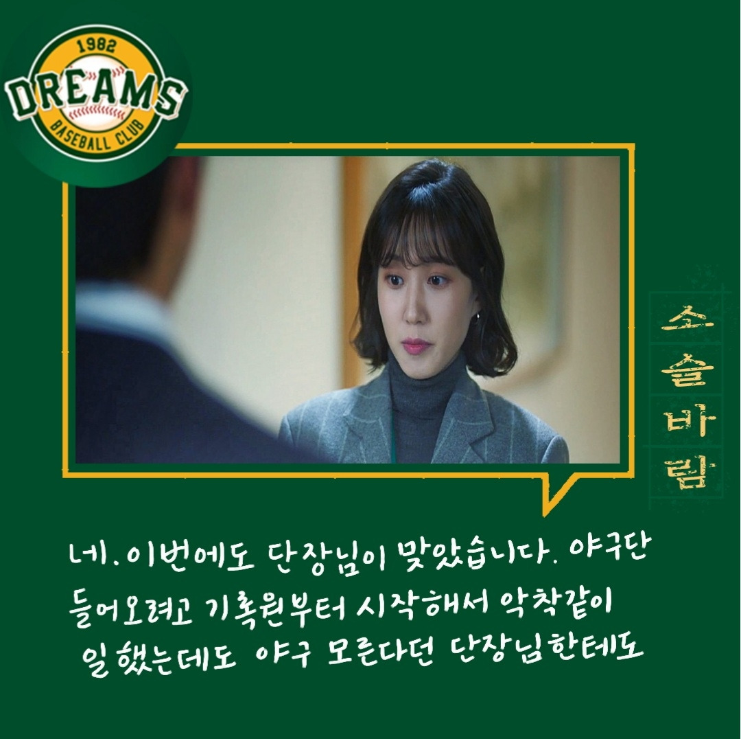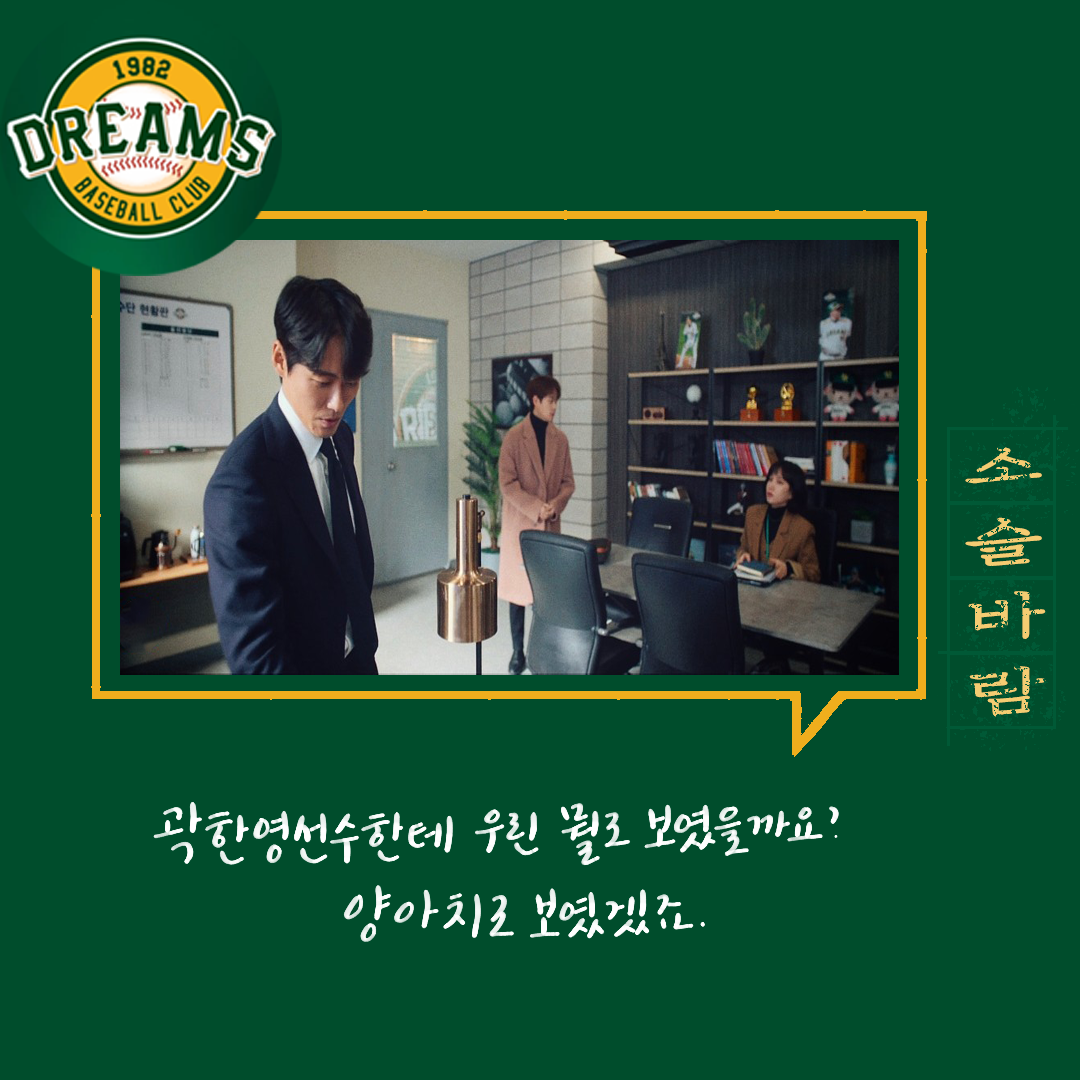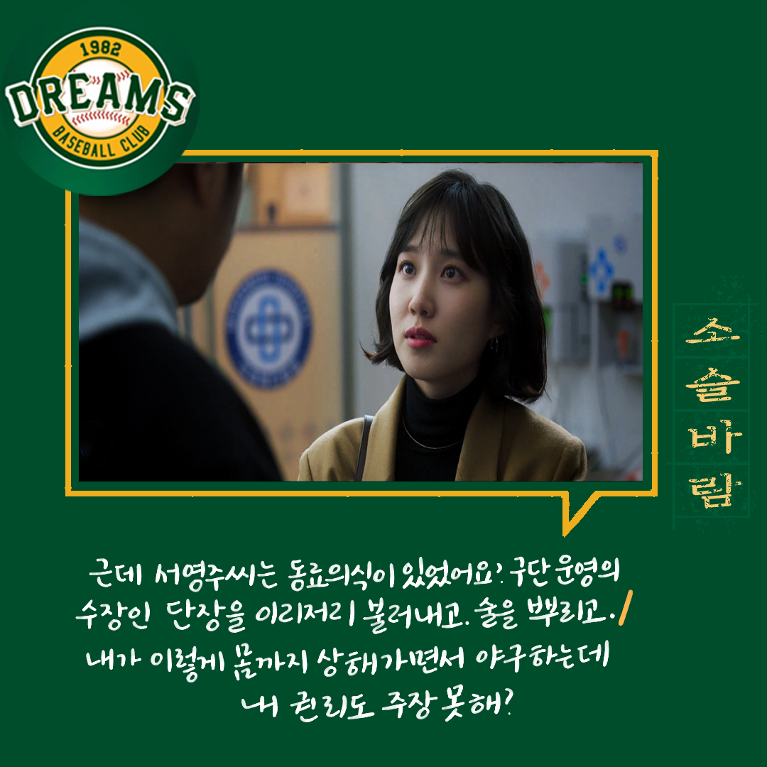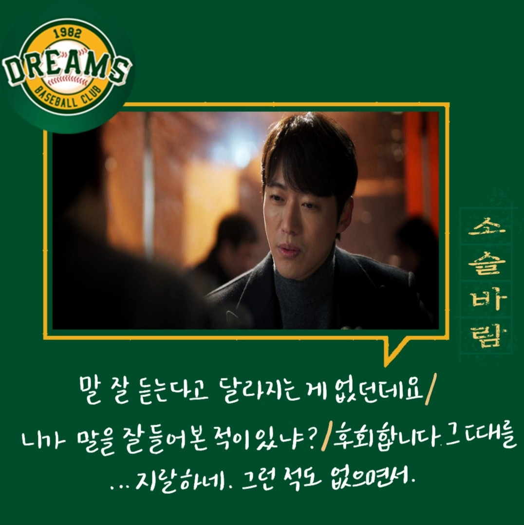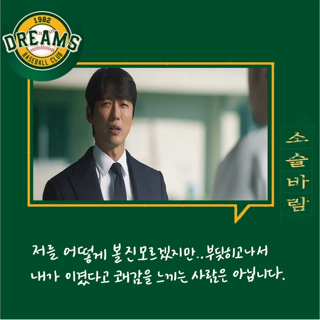 다양한 사람들. 다양한 의견들. 의견의 차이를 좁히는 방식들. 매번 한 사람의 말만 맞을 수 없다. 그래서 여러 사람의 의견을 들어보고 결정하는 게 좋다. 그 사이에 갈등도 현명하게 풀어내야 한다. 백승수는 언제나 여러 말을 듣고 판단하고 결정한다. 야구인생으로만 보면 세영이 선배지만 위치는 승수가 더 높기에 세영은 단장이 틀렸다고 생각했지만 한 번 믿어보기로 했다.