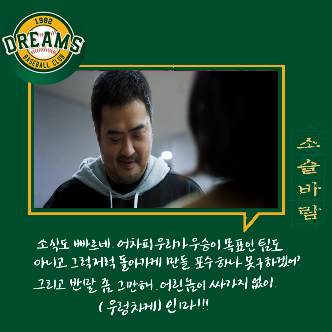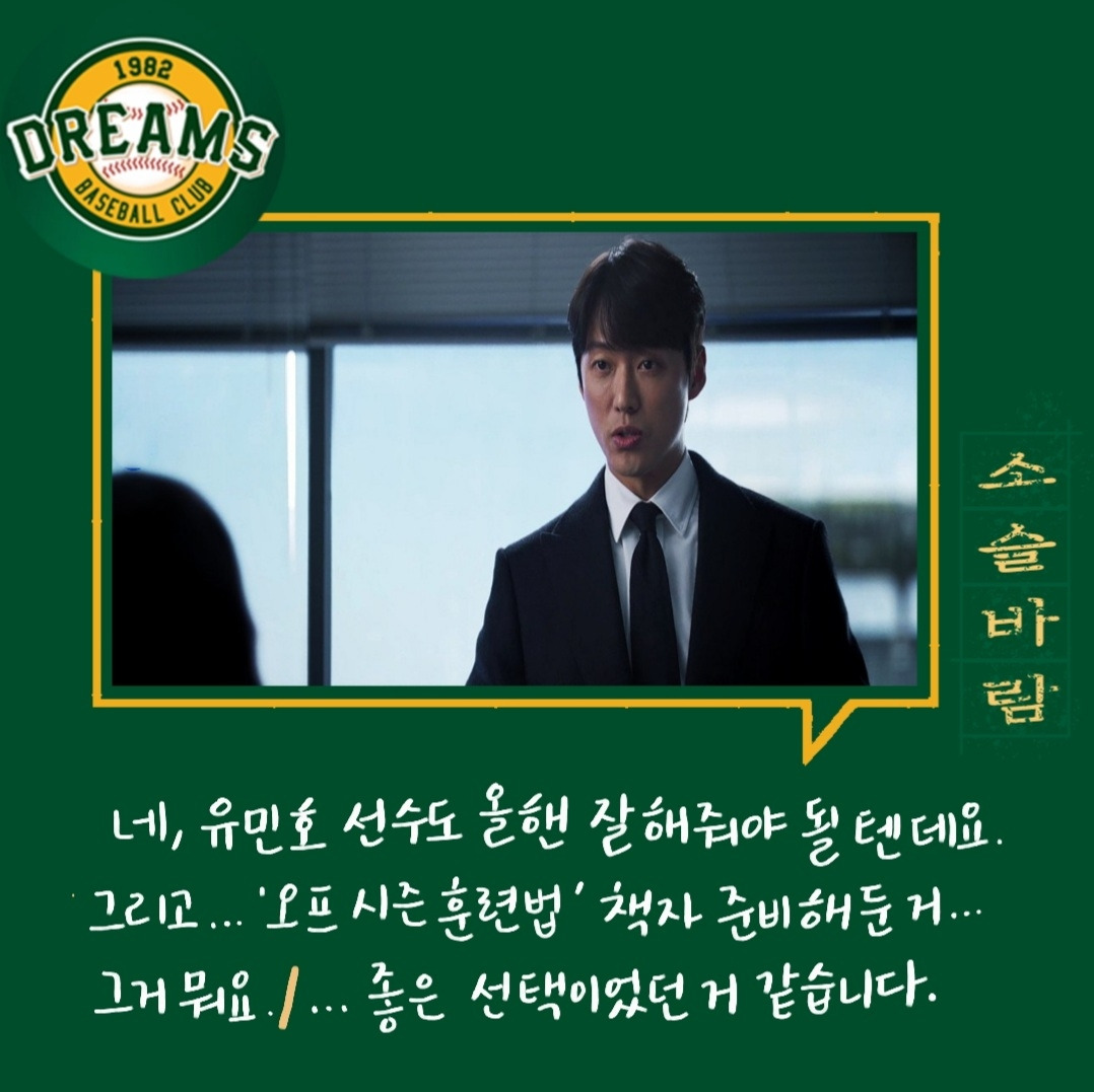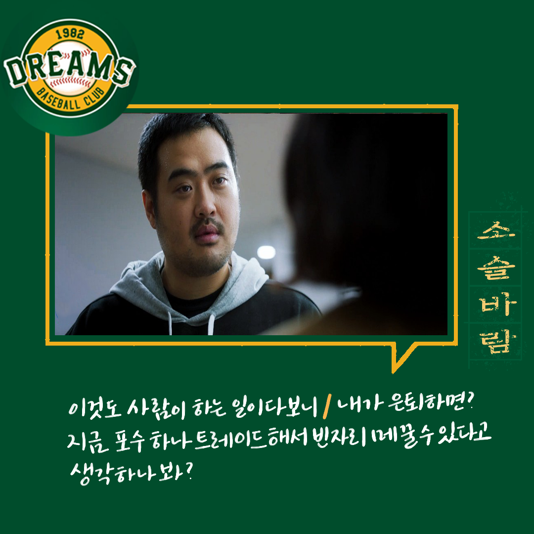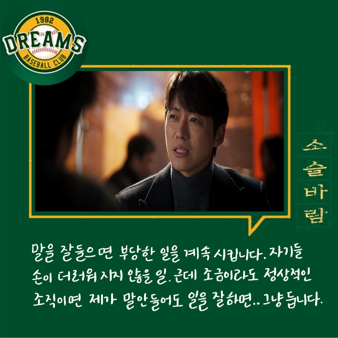 다양한 사람들. 다양한 의견들. 의견의 차이를 좁히는 방식들. 매번 한 사람의 말만 맞을 수 없다. 그래서 여러 사람의 의견을 들어보고 결정하는 게 좋다. 그 사이에 갈등도 현명하게 풀어내야 한다. 백승수는 언제나 여러 말을 듣고 판단하고 결정한다. 야구인생으로만 보면 세영이 선배지만 위치는 승수가 더 높기에 세영은 단장이 틀렸다고 생각했지만 한 번 믿어보기로 했다.