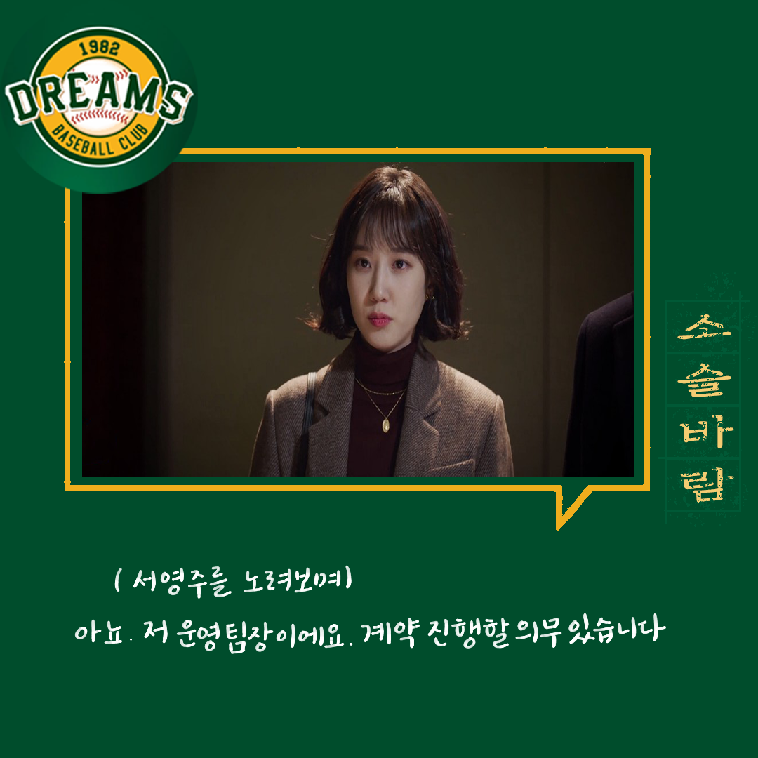 서영주는 자신이 제시한 금액과 구단에서 제시한 금액에 너무 큰 차이가 있어 자신이 얼마나 아픈지를 보여주며 다시 생각해오라고 말한다. 그리곤 단장을 술집으로 불러내는데, 여기서도 구단에서 제시한 금액이 터무니없이 적어 무례한 행동을 보인다.