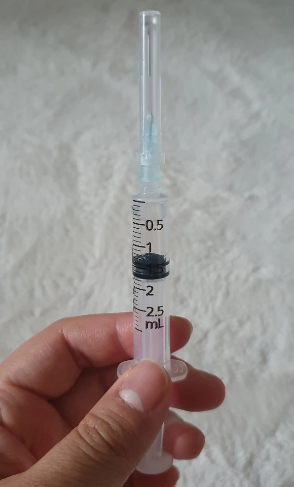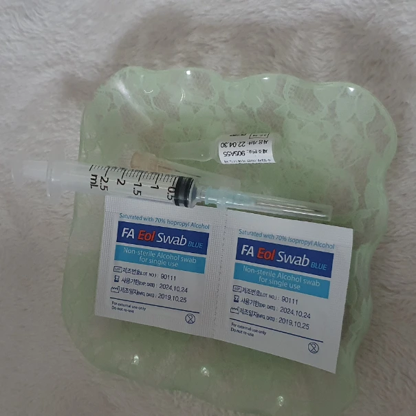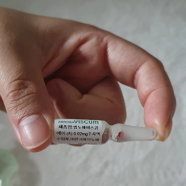 주 3회 주사를 직접 배에 놓고 있다. 압노바비스쿰이라는 약물인데, 일단 저 약통을 깨트린 다음 주사로 약물을 꺼낸다. 그다음엔 주삿바늘을 작은 걸로 바꾼 다음 배꼽 주변에 주사를 놓는다.