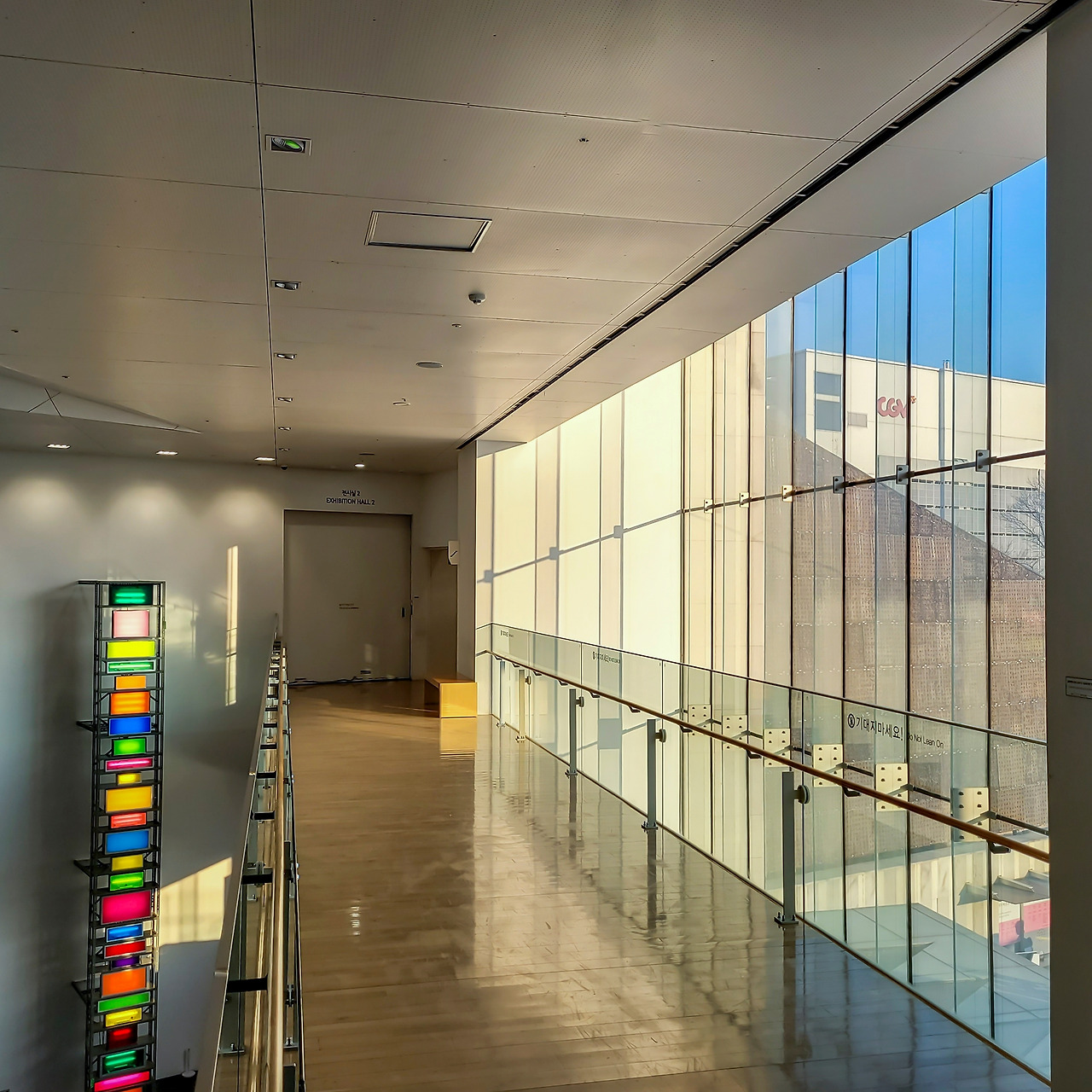 전시장 입구에 백남준, 데이빗 바첼러의 작품을 전시하고 있는데요, 그건 촬영할 수 있거든요. 미술관 포토존도 '빛'으로 꾸며 놓았고요, 미술관 채광도 좋더라고요.