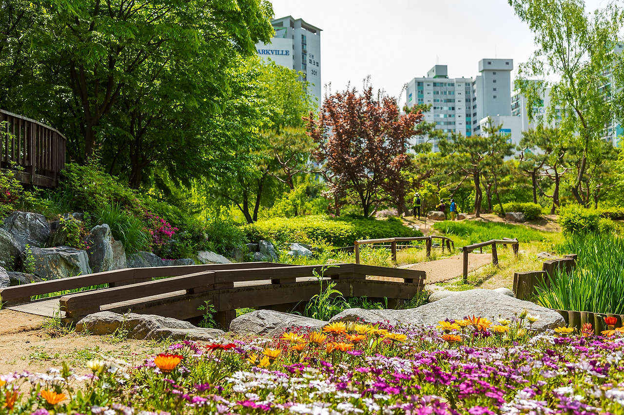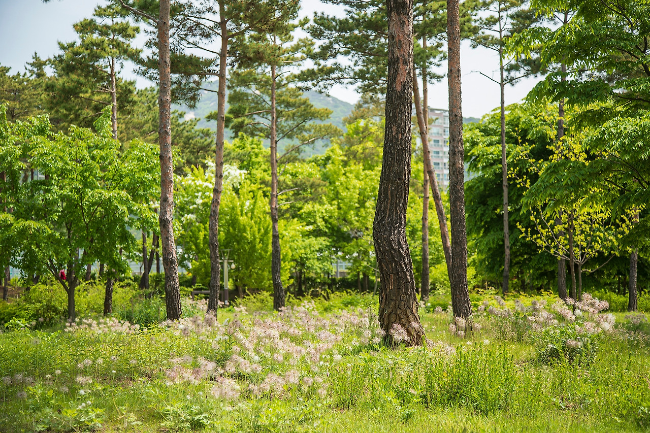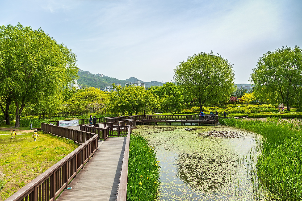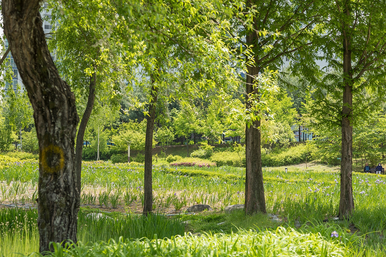 <창포원> 근처에 아파트 단지가 있습니다만, 탁 트인 풍경이 초록초록해서 그런지 눈이 맑아지는 것 같아요. 산들산들 바람에 장단 맞추는 나뭇잎이 '바스스 일어나서 가벼이 손짓' 하는 것 같아요