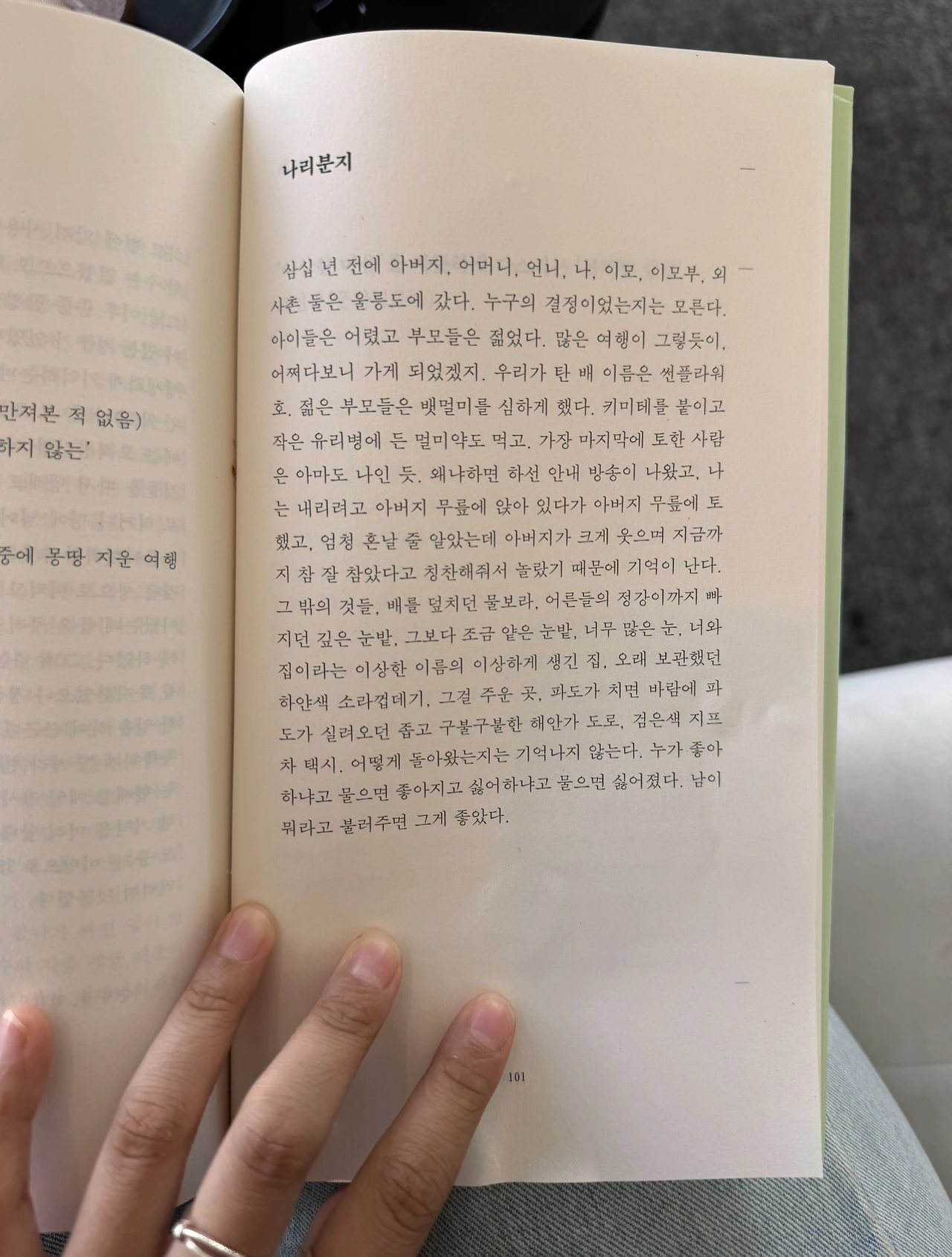 큰 섬 아래 갈래갈래 이어진 길과 숲과 산을 헤치다 보면 문득, 여기 왔었던 것만 같은 기시감이 드는 순간들이 있었어. 곧장 우리 여기에 온 적이 있냐고 아빠에게 물으면 내가 몇 살 배기일 때 왔었다고 했어. 나는 올해가 아닌 지난해에, 스무 살이었던 해에, 또 엄마·아빠의 말로만 기억나는 아주 어렸을 해에도 제주도에 왔었는데, 가족 넷이, 할머니도 이모도 같이, 친구들끼리서만도 왔었는데, 역시 그것이 누구의 결정이었는지는 모르겠지만, 대부분은 여름이었고, 그건 작은 파편처럼만 기억이 난다.