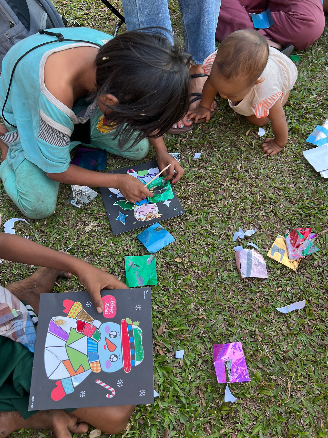 일주일 동안 워크샵이 있어서 오후에 나올 틈이 없었다. 워크샵이 끝나자마자 다공으로 향했다. 크리스마스 선물을 주러 갔을 때 우리를 기다렸던 아이들이 또 오라고 했던 것이 마음에 남았기 때문이다. 이곳을 가면 저곳을 못 가고, 좀 더 자주 나오면 될 일인데 고작 일주일에 한 번 나가는 것도 왜 이렇게 쉽지 않은지 모르겠다. 아이들이 별로 보이지 않았다. 인도에 아이가 아기를 안고 앉아 있길래 다가갔다. 포일아트를 보여주며 하겠냐고 하니 고개를 끄덕인다. 만난 적 있는 아이였다. 남자아이인 줄 알았는데 여자아이었다. 형제자매가 몇 명이냐고 하니 많~아요.라고 대답했다. 그래서 몇 명인데? 물으니 손을 펼쳐 손가락을 하나씩 접으며 세기 시작했다. 6명이라고 했다가 자기랑 안고 있는 아기까지 포함하면 8명이라고 했다. 엄마는 근처 어딘가에 있고 아빠는 감옥에 있단다.