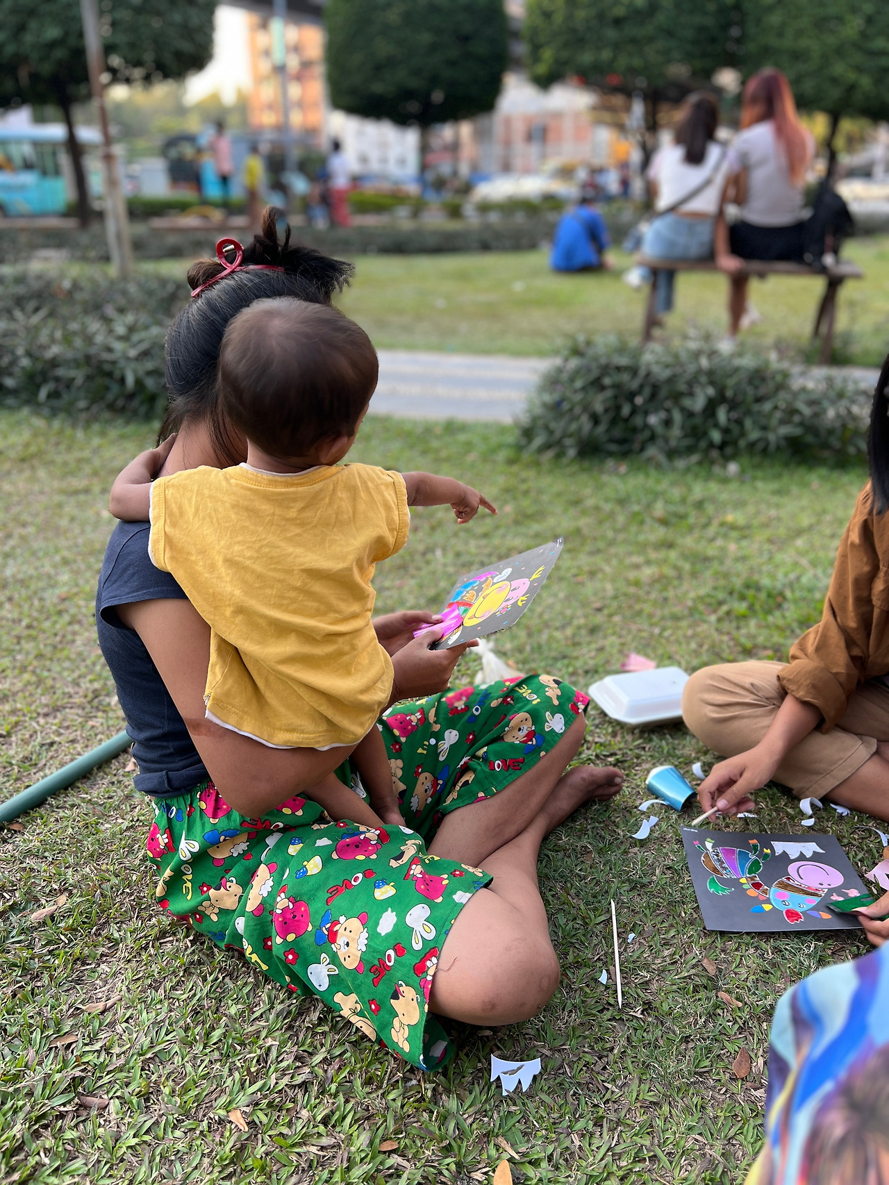 다행히 오늘은 접이식 의자를 가져와서 앉았다. 한 시간 정도 쪼그려 앉아 있으면 무릎이 다 나가버리는 느낌이었는데, 의자에 앉으니 훨씬 수월했다. 아이들뿐만 아니라 몇몇 어른들도 관심을 보였다. 즐거워하는 아이들을 보며 흐뭇하게 보고 지나가기도 했다. 좀 커 보이는 아이들도 다가왔다. 십 대쯤 되어 보이는데 갓난아기를 안고 있었다. 역시나 그런 사연이 있는 아이였다. 18살인데 자기 아기란다. 아기가 한 두 명이 아니다. 누구의 아기들인지 이품 저 품에 다 아기들이 안겨 있다.