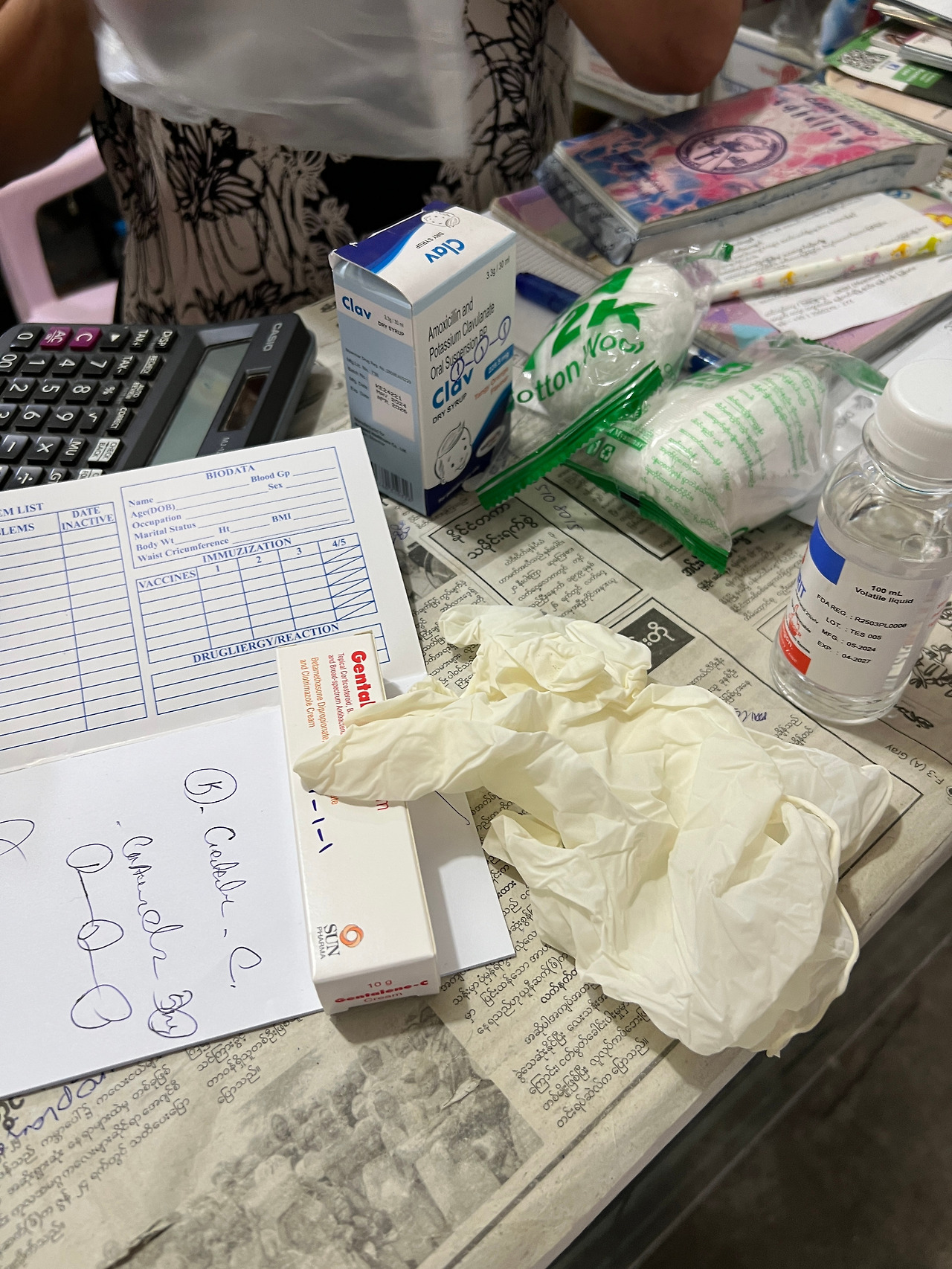 근처에 구걸하고 있던 큰 언니에게 가서 허락을 받고 아이들을 데리고 병원으로 향했다. 큰 언니는 20대 정도 되어 보이는데, 대체 어떻게 첫째와 막내 나이 차이가 이렇게 많이 날 수 있는 건지, 진짜 가족이긴 한 건지 의문이 들었지만 묻진 못했다. 어디에 병원이 있는지도 몰라서 사람들에게 물어물어 작은 의원 같은 곳을 찾아갔다. 미얀마에서 병원은 매우 비싸기 때문에 동네 작은 의원을 주로 간다. 우리가 간 곳에도 사람들이 많았다. 아이 이름을 적고 접수를 하고 밖에 앉아 기다렸다. 기다리는 동안 책도 읽어주고 Super book 영상도 보여줬다.