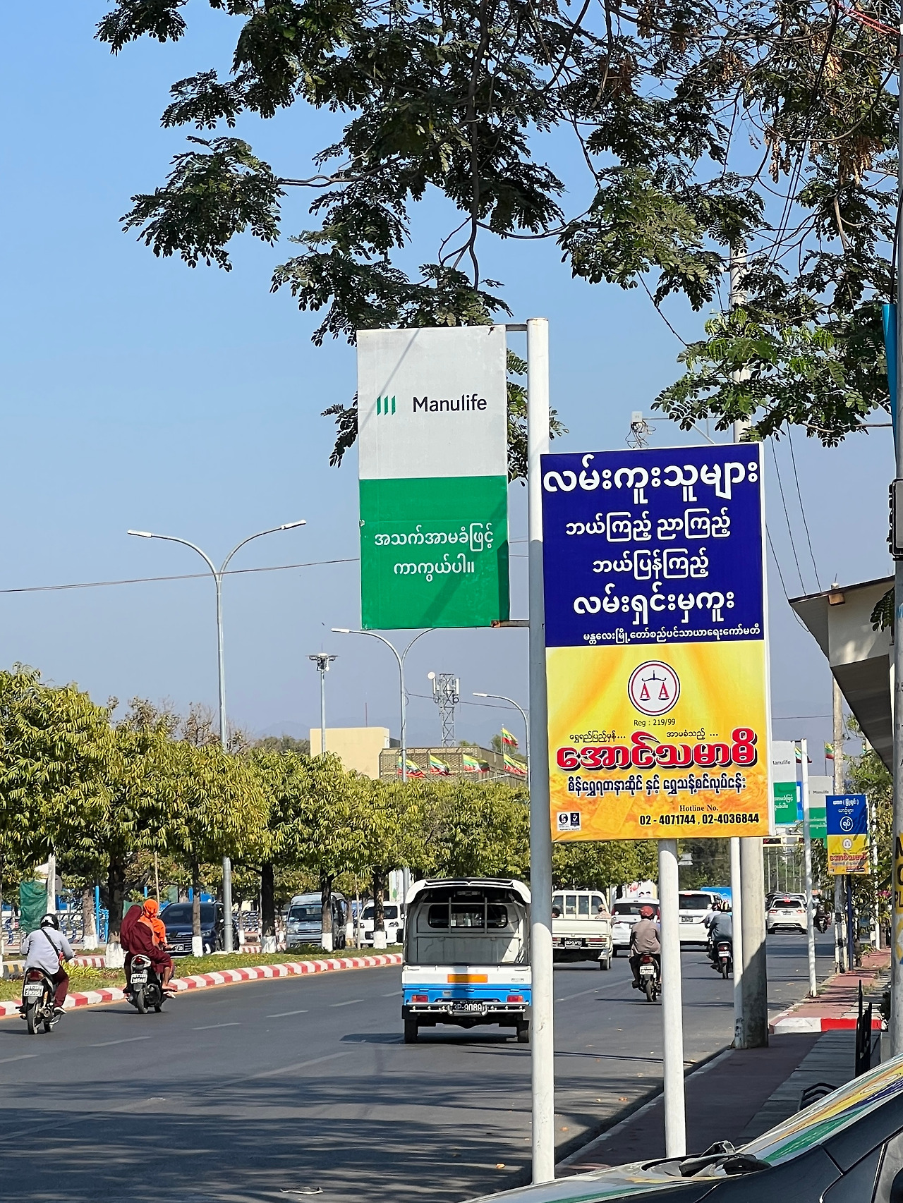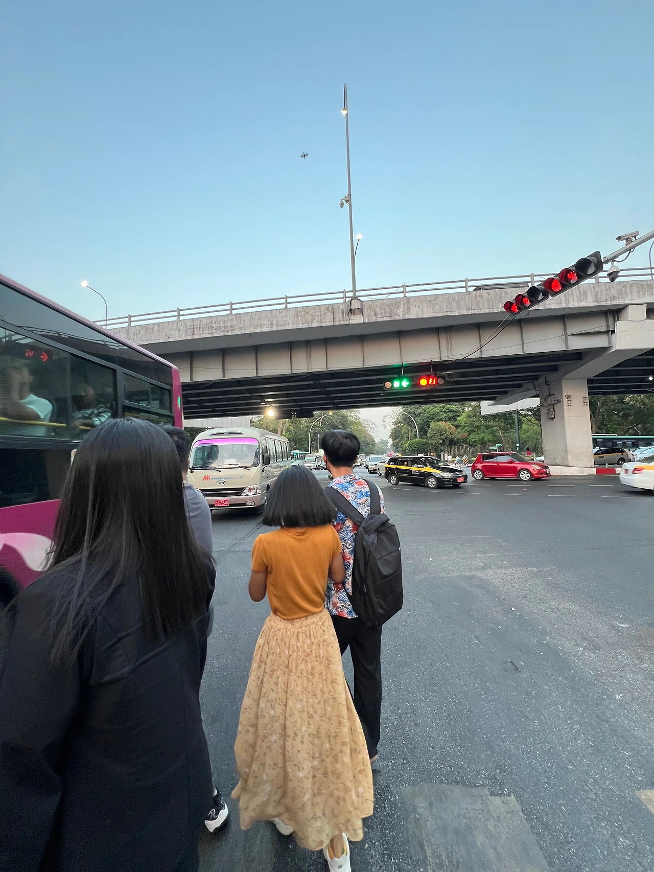 여기서 꿀팁은, 주위 미얀마 사람들이 건널 때 붙어서 같이 건너면 좋다. 무단횡단에 익숙하지 않은(?) 외국인에게 그 타이밍 잡기란 꽤 쉽지 않은데, 미얀마 사람들에겐 이 것이 일상이므로 요리조리 잘 건너는 것은 물론이요, 여유까지 있다. 두근두근 쫓기는 마음을 부여잡고 어딘가 능숙해 보이는 미얀마 분 옆에 슬그머니 붙어서 같이 건너면 꽤 안심이 된다. 그리고 스님과 함께 건너면 더 안전하다. 물론 그것도 상황마다 다르겠지만 보통 미얀마는 스님들을 존중하기 때문에 좀 더 조심해 준다.