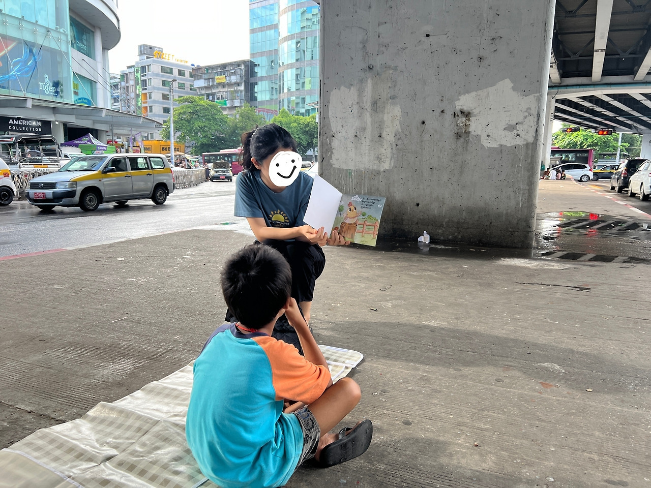 이 날이 얼른 오기를 바랐지만 얼른 오지 않기를 바라기도 했다. 낯선 길거리 아이들을 불러 모아 책을 읽어준다는 것이 (심지어 미얀마어로) 얼마나 긴장되는 일이던지!