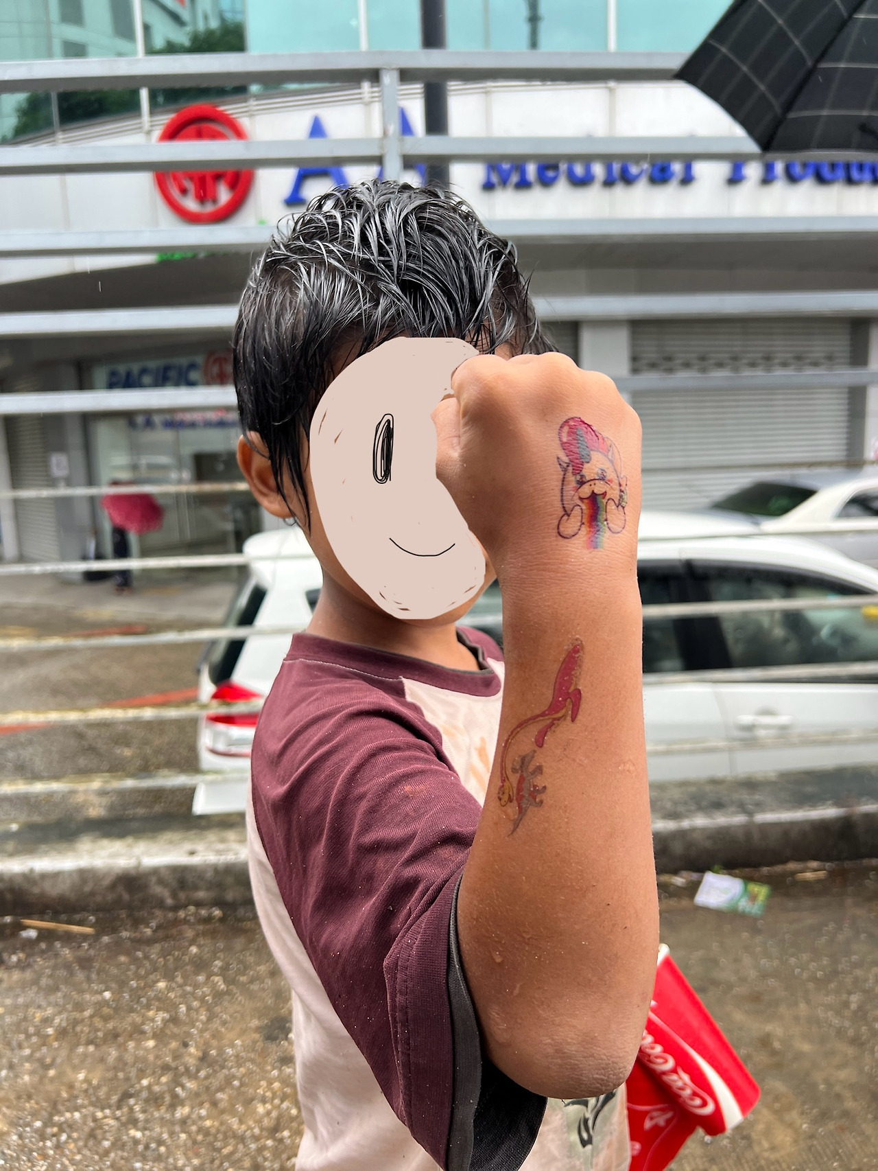 아무튼 나는 우산을 주지 않았다. 대신 마음을 주려고 노력했다. 스티커를 붙여주고 사진도 찍어주고 보여줬다. 어때? 멋져? 다시 찍어줄까? 아이가 만족스러운 자신의 모습을 확인할 수 있도록 몇 번을 다시 찍고 보여줬다.