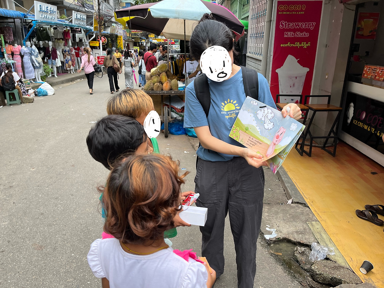 돌아가는 길에도 네 명의 아이들을 더 만났다. 두 살 동생의 손을 잡고 차도 옆에 아슬하게 차려 놓은 포장마차를 기웃거리며 머리 위에 이고 있는 벼(새 먹이)를 팔고 있는 아이에게도 잠깐의 아이다움을 선물했다. 아이들이 너무 좋아해 줘서 바로 쿠팡으로 타투스티커 50장을 주문했다. 그다음 주면 그것을 받아 더 많은 아이들에게 해줄 수 있을 것 같다. 오늘은 총 14명의 아이들을 만나 스티커를 붙여주었고 두 번에 걸쳐 5명의 아이들에게 책을 읽어주었다. 다음 주에는 어떤 아이들을 만나 어떤 이야기를 나누게 될까.