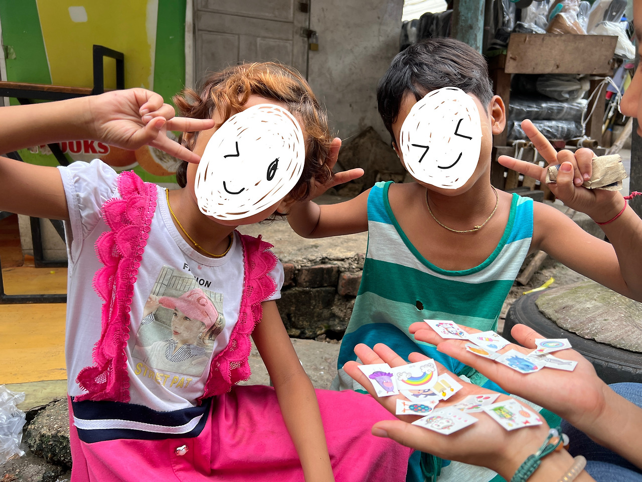 그 자리에서 4명의 아이들에게 스티커를 붙여줬다. 친구들이 더 없냐고 물어봤다. 이곳에 있는 아이들은 늘 이곳에서 지낼 테니 서로 아는 사이일 것 같았다. 손가락으로 저~기를 가리키며 어디 골목으로 가면 친구들이 있다고 했다.