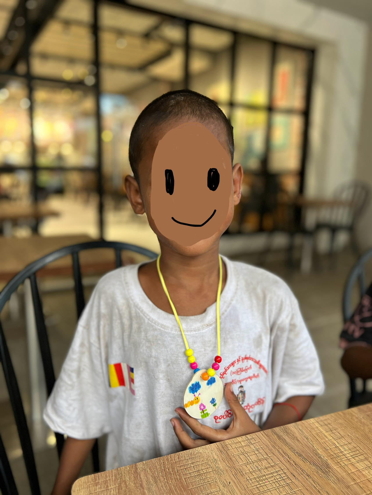 이렇게 총 8명의 아이들이 나만의 나무 목걸이를 만들어 갔다. 모두 무척 기뻐했고 소중히 여겼다.