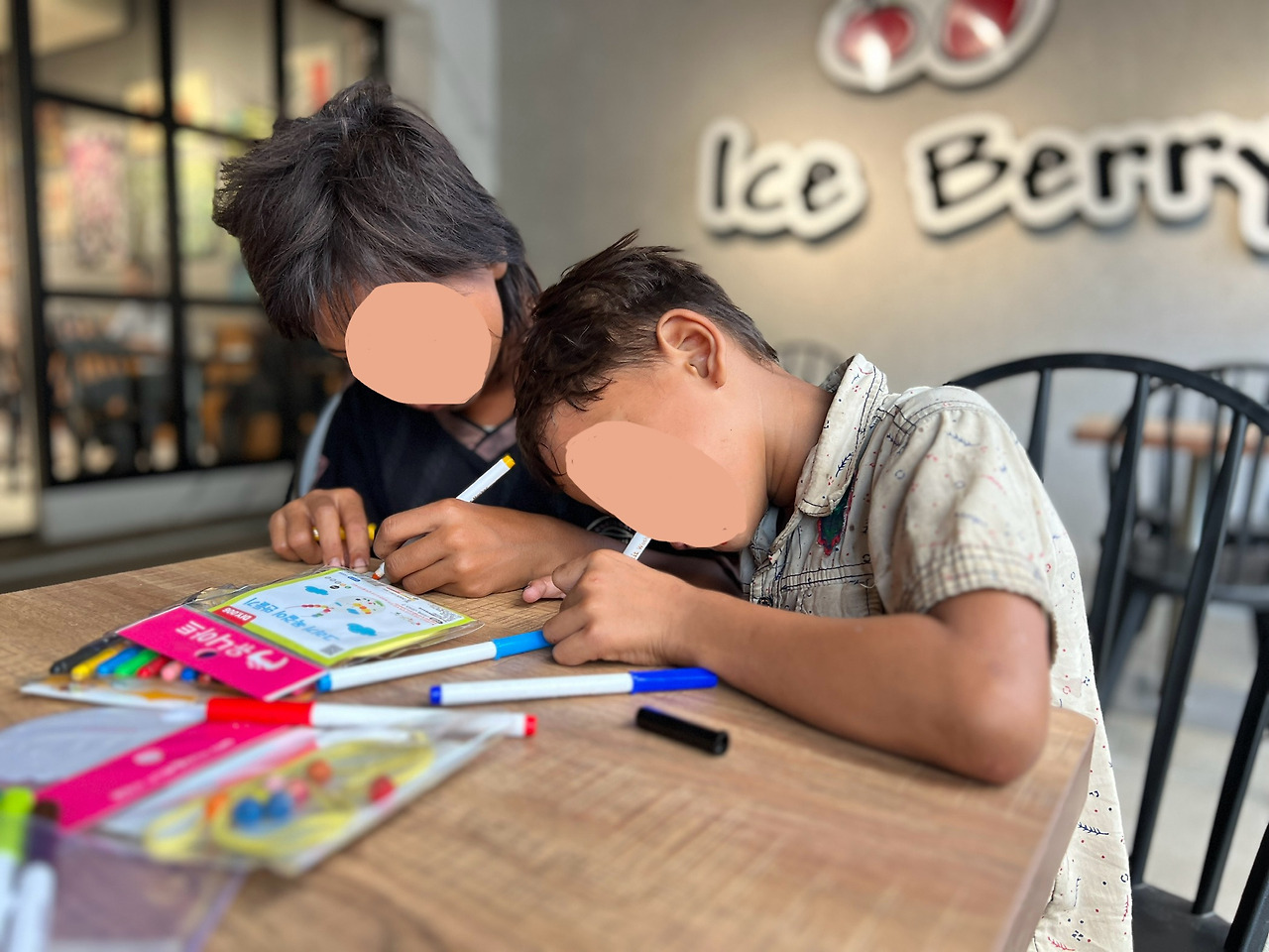 아이들이 있었던 곳은 한 카페의 야외석 공간이었다. 테이블도 있었고 인도와도 구분되어 있어서 붐비지도 않고 깨끗했다. 그곳에 앉아 놀고 있는 아이들에게 여기서 계속 있어도 되냐고 물으니 괜찮다고 했다. 주인이 화내지 않을까? 물으니 괜찮단다. 그래, 얘네가 전문가겠지 싶어서 자리를 잡았다. (혹시 누가 뭐라고 하면 음료 주문해 먹어야겠다 하며)