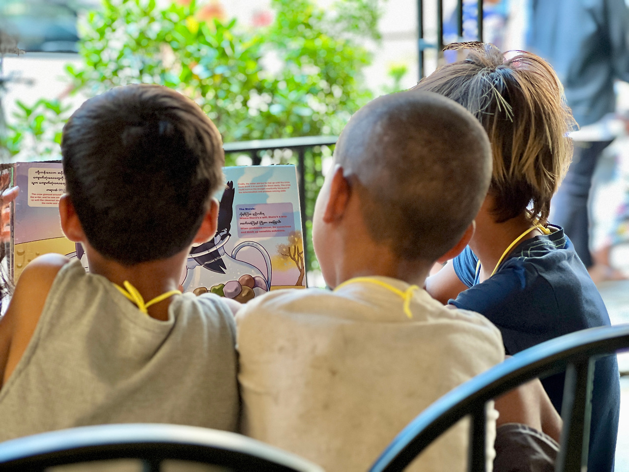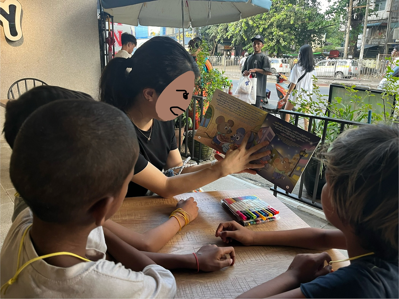 아이들이 오고 가고 하는 동안 아웅과 친구 한 명은 계속 우리와 함께 있었다. 마무리되어 가는 것처럼 보이자 오늘 책은 안 읽어주냐고 했다. 역시 너는 책 읽기를 좋아하는구나! 너를 위해 우리가 새 책을 샀지!