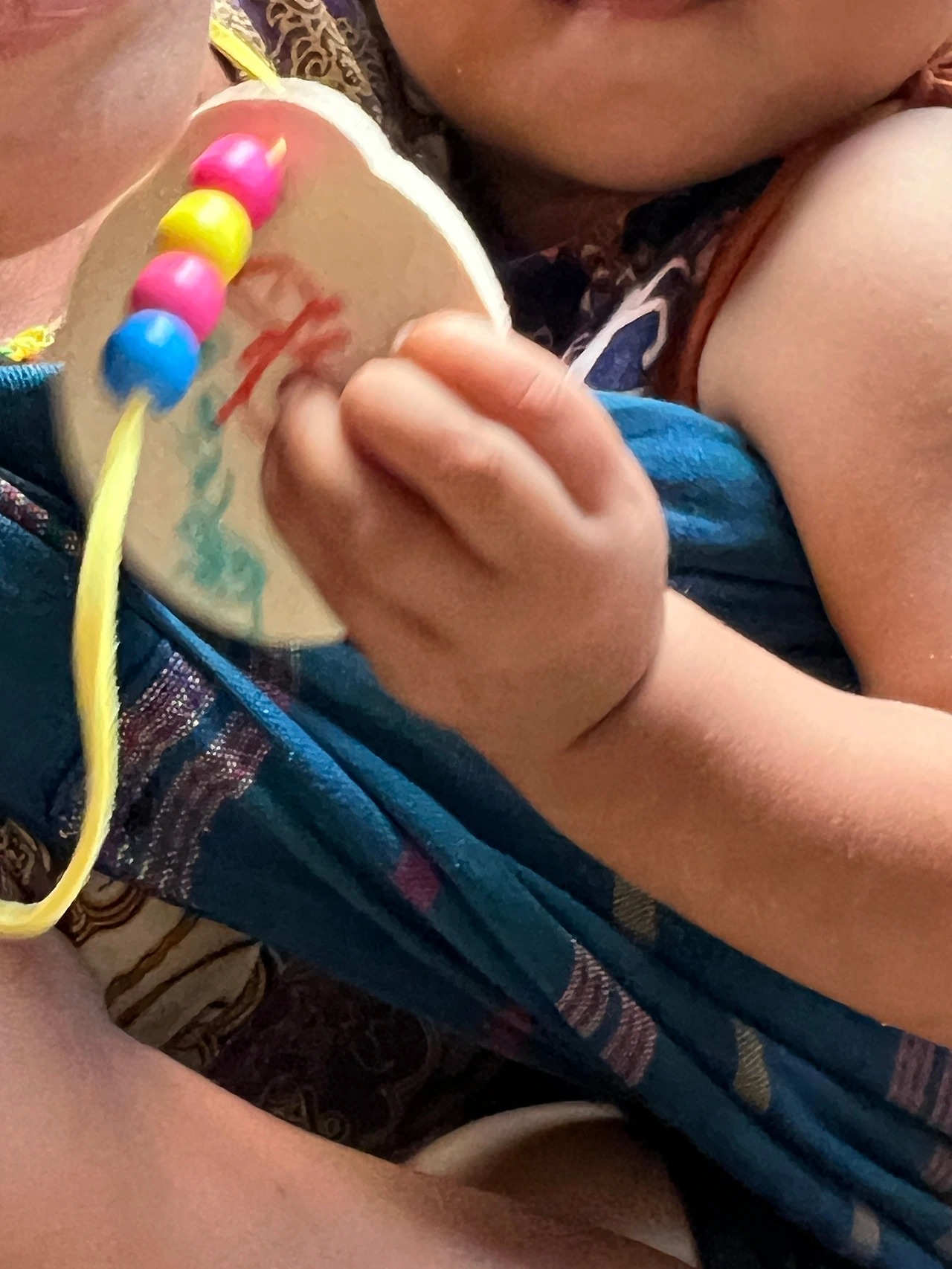 동생이 자꾸 목걸이를 만지고 방해했지만 끝까지 집중력을 잃지 않고 제일 먼저 만들기를 마쳤다.