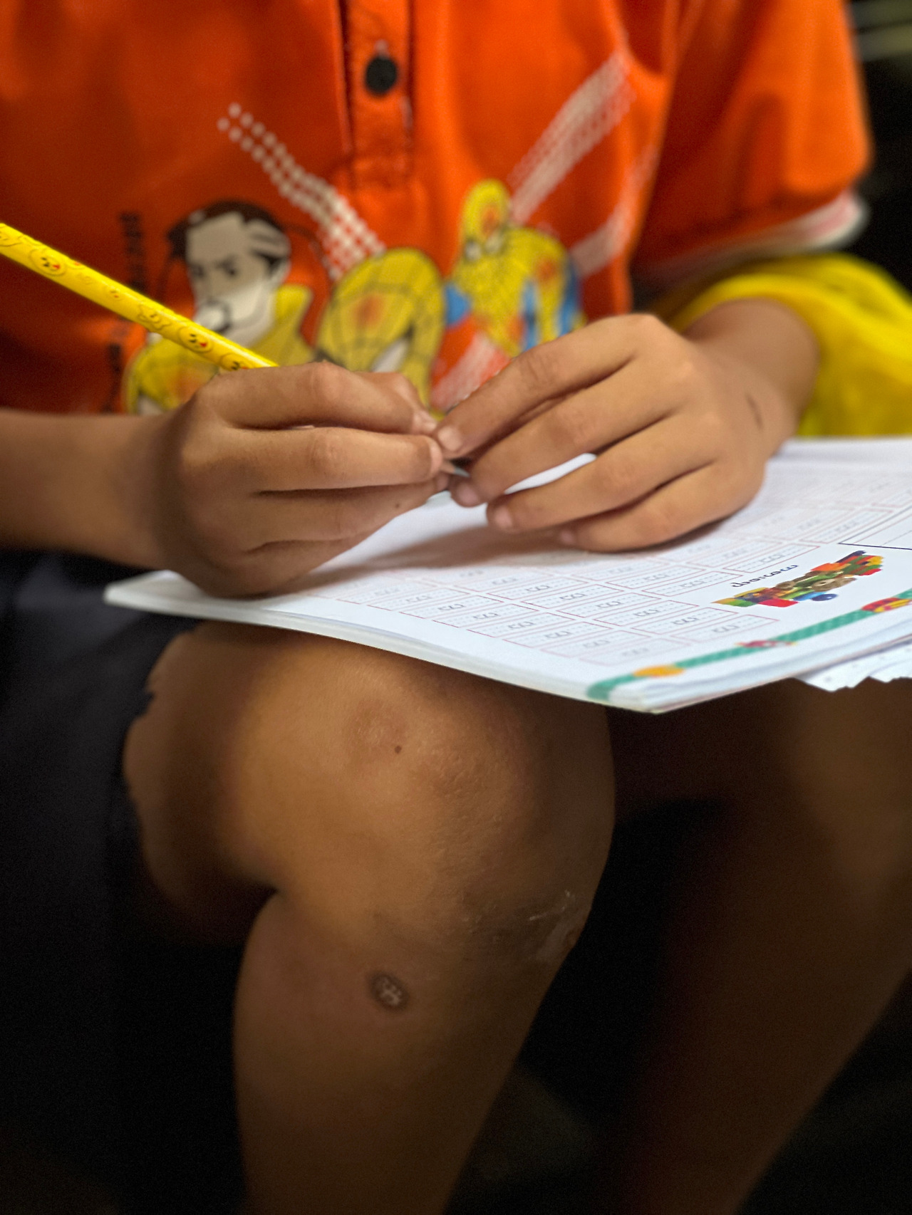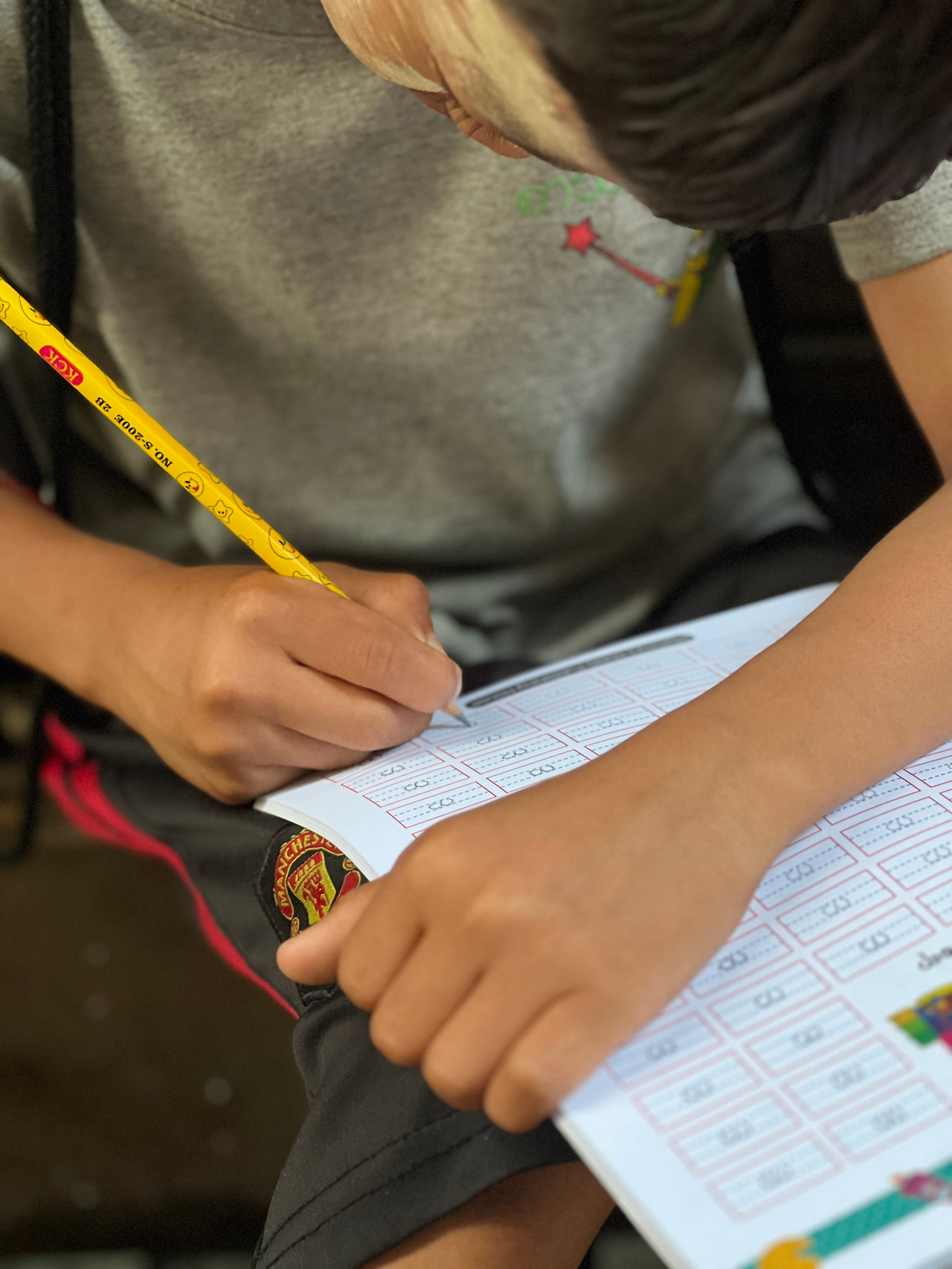 아웅의 여동생은 말이 참 많았다. 오빠들은 집중해서 열심히 쓰고 있는데 여자아이는 연필 뚜껑을 떨어뜨리기도 하고 우리에게 말을 걸기도 했다. 한참을 쓰다가 아웅이 동생의 수다가 거슬렸는지 시끄럽다며 멀리 떨어져 앉았다. 현실 남매구나 싶었다. ㅋㅋ 여자아이는 계속해서 종알종알 말을 했다. 결국 오빠들은 두 번째 알파벳까지 하는 동안 첫 번째 알파벳에서 멈춰야 했다.