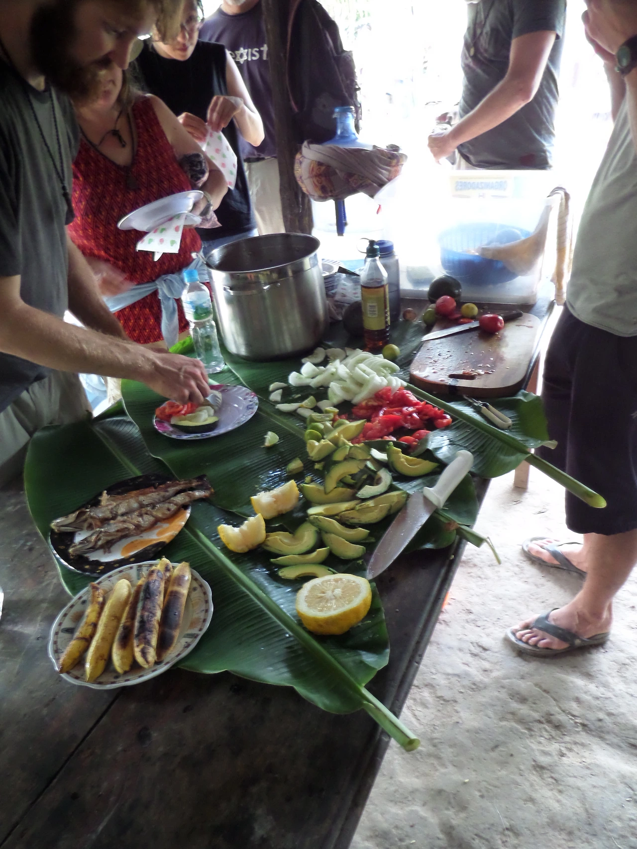 타닥타닥 모닥불 위에 구워진 생선과 플란타인, 아보카도와 몇몇의 야채가 Shipibo 부족 전통방식으로 바나나 나무 잎 위에 가지런히 차려지고 우리는 그들의 음악을 듣는다. 북소리가 나무를 타고 바람에 닿는다.