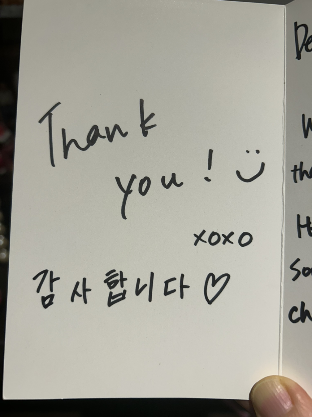 우체통을 확인하니 광고지, 아파트 관리비 같은 건조한 종이들 틈에 귀여운 카드가 있었다. 카드에는 한국어를 찾아보았는지 "감사합니다"라는 글자도 쓰여 있었고, 무려 70불이라는 지폐가 들어있었다.