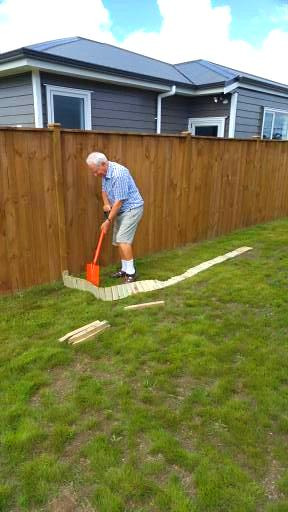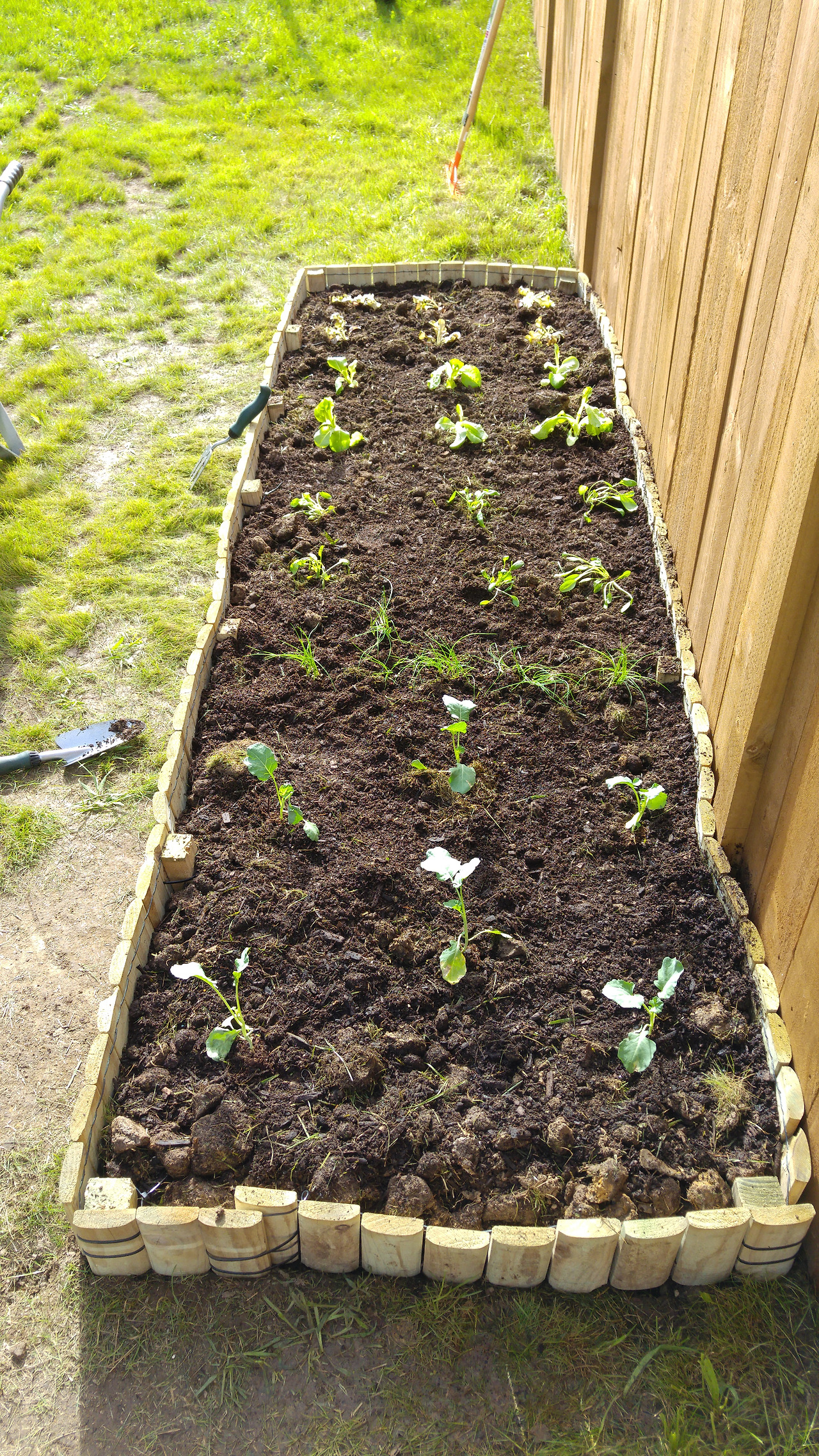 낙락한 볕이 드는 곳으로 자리를 잡고 삽으로 땅을 솎는다. 보통 텃밭을 만들도록 나온 길고 단단한 목재를 이용하여 제대로 지으려면 200불 정도 든다는 계산에 우리는 작은 울타리 모양으로 돌돌 말린 꾸러미 두 묶음을 30불도 되지 않게 구입하기로 한다.
