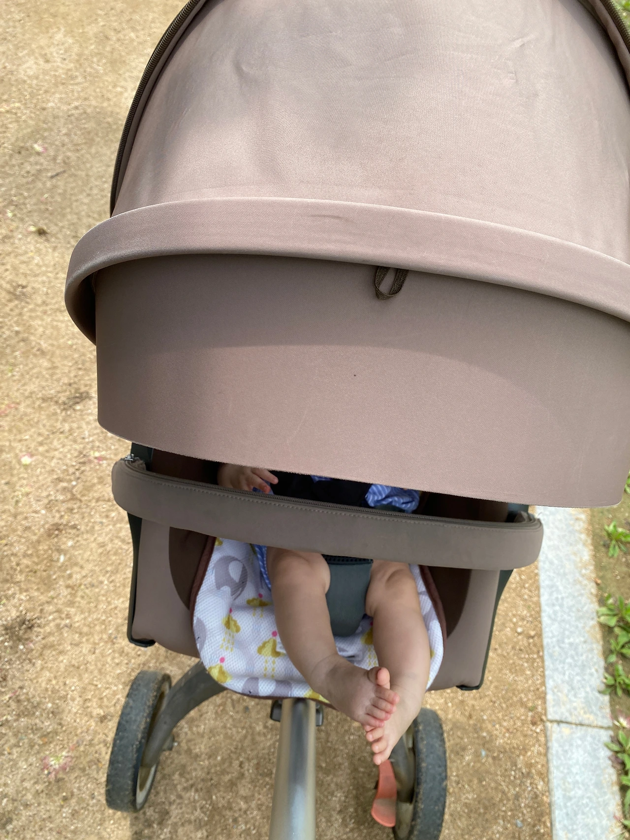 인생 158일차 오늘의 러닝메이트, 발가락으로 엄마에게 따봉을 날려준다.