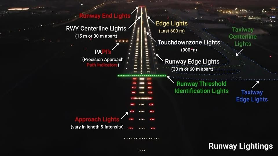* 활주로 등 : Approach light + Touch-down zone light + Threshold Identification light + Runway edge light + Runway End light + PAPI light