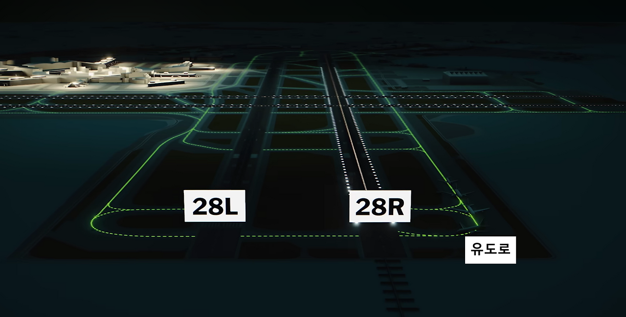 * 유도로 등 : Taxiway Edge light (파란색) + Taxiway Centerline light (초록색)