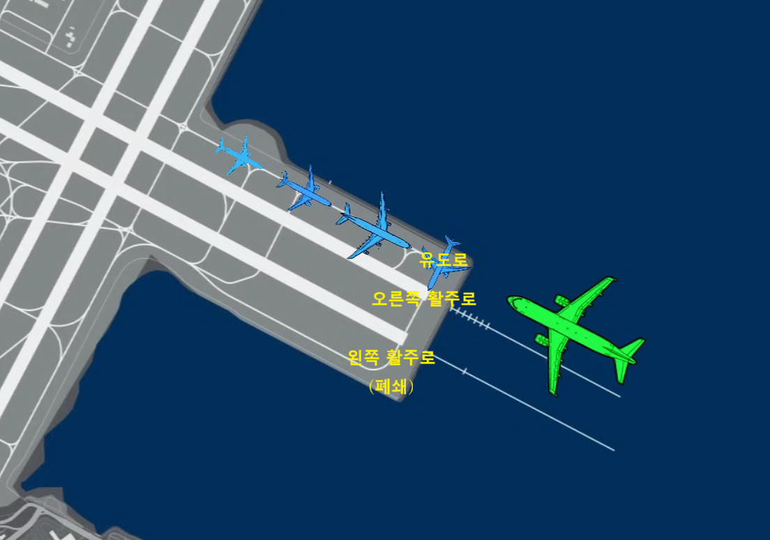 ・유도로 (Taxiway) : 공항 게이트에서 이착륙하기 위한 활주로까지 가기 위한 도로.