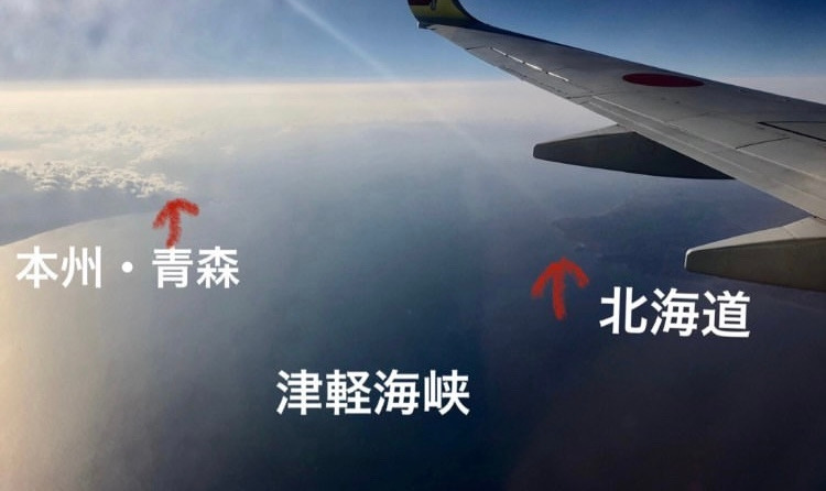 국내선을 타고 홋카이도로 올라가며 보았던 츠가루 해협. (왼쪽이 혼슈, 오른쪽이 홋카이도이다.) 2020년 11월
