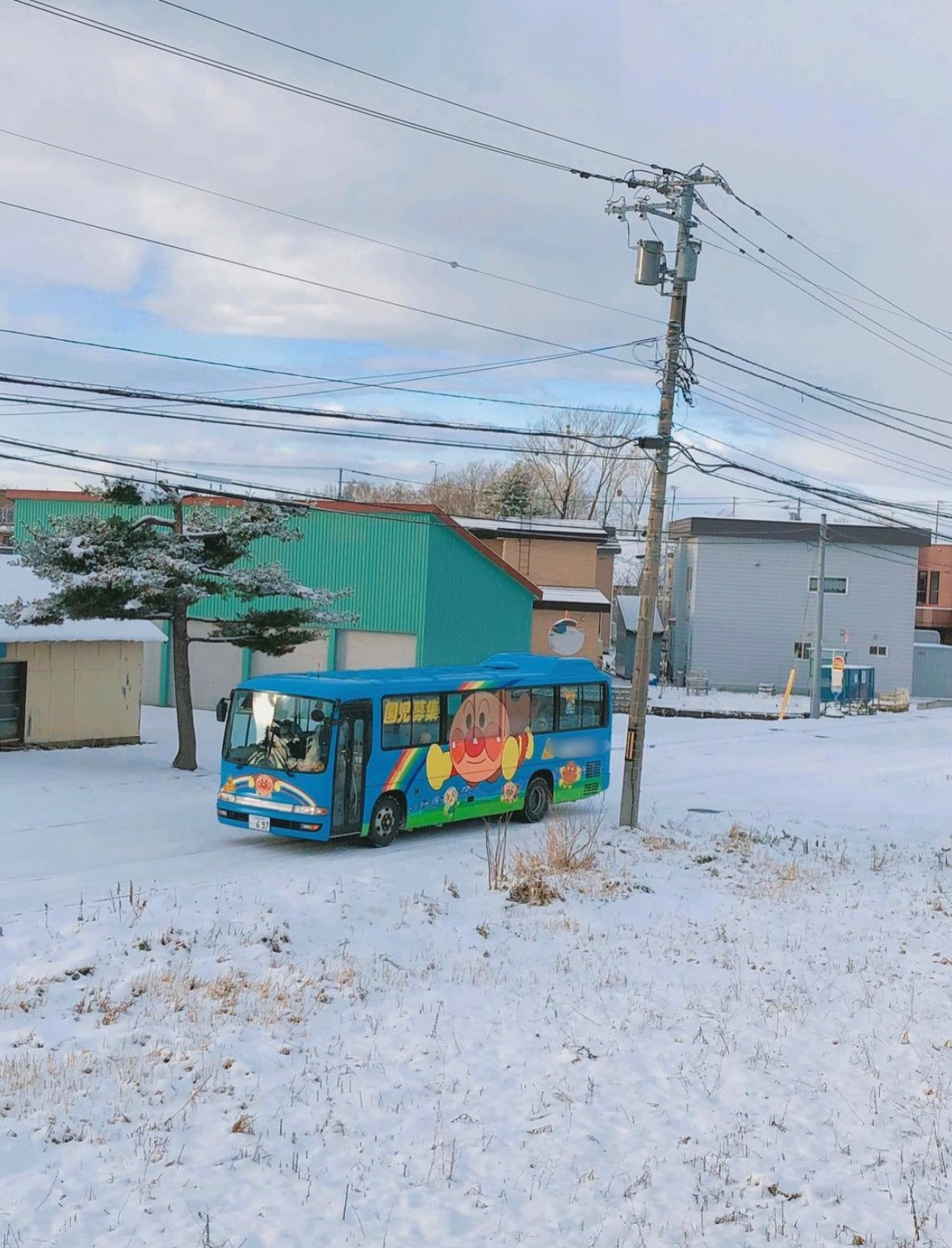 호빵맨이 그려진 귀여운 유치원 버스. 매일 7시 반 정도가 되면 사택 앞을 지나갔다.