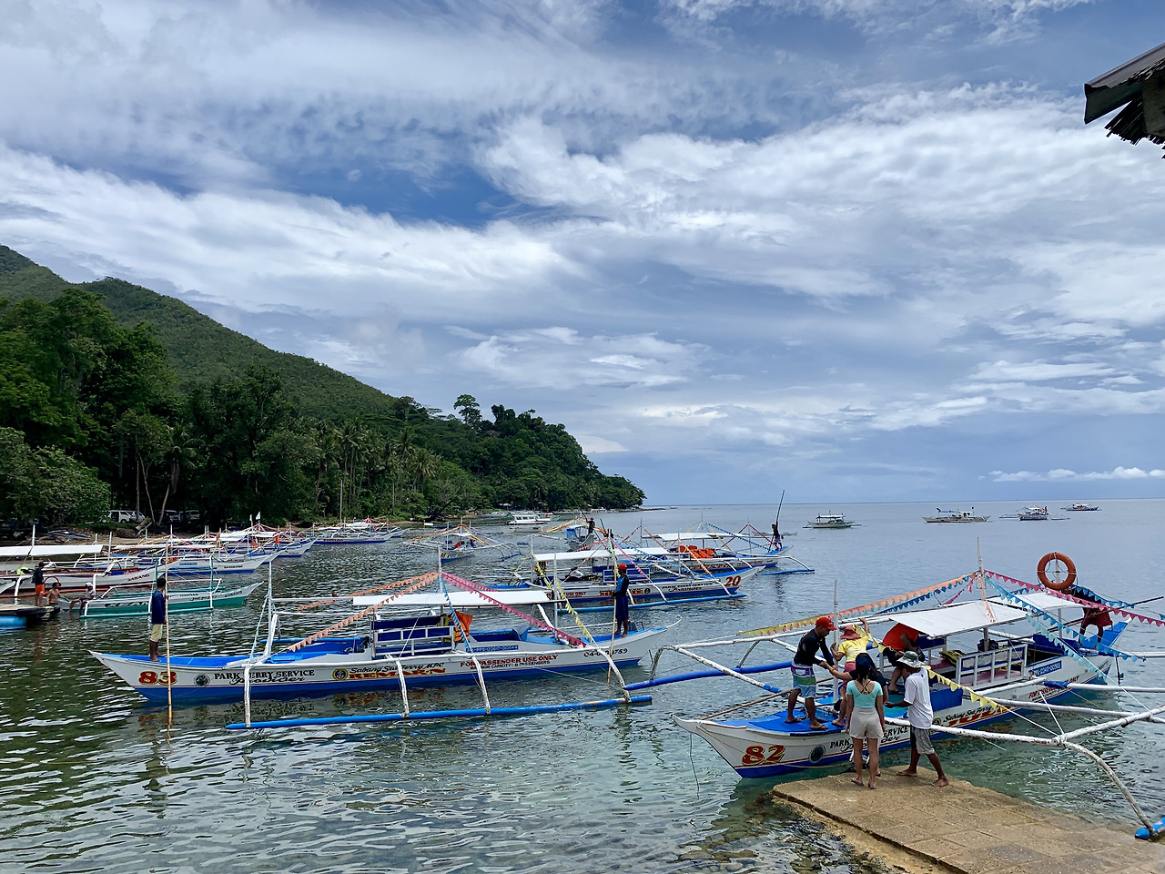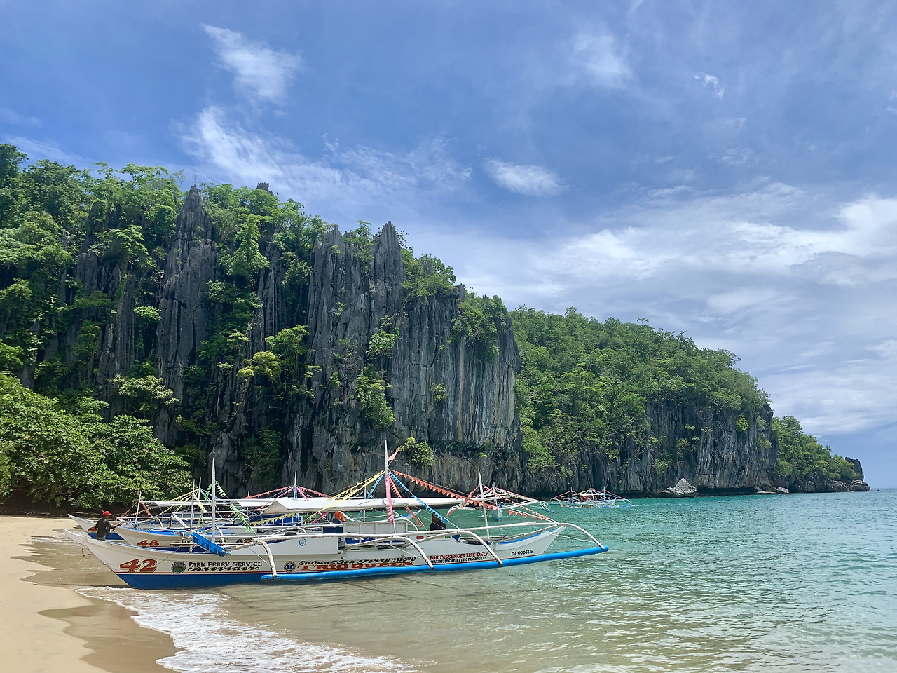 다시 차를 타고 사방Sabang 비치 도착. 언더그라운드 리버로 가려면 여기서 대나무 지지대를 붙인 나무 보트 방카Bangka를 타야 한다. 방카는 나무 보트 양옆으로 팔을 벌린 듯한 지지대가 출렁이는 파도에도 균형을 잡아 준다. 시원한 바닷바람과 이어지는 석회 절벽들. 멋진 경치에 피곤함이 조금 가신다. 절벽 사이사이 나타나는 백사장. 수직으로 날렵하게 침식된 암석들. 팔라완은 이 회빛 암석들로 이루어진 섬이다. 거대한 창들이 삐죽삐죽 솟은 모양새. 무엇을 지키려 이토록 사납게 버텨왔을까.