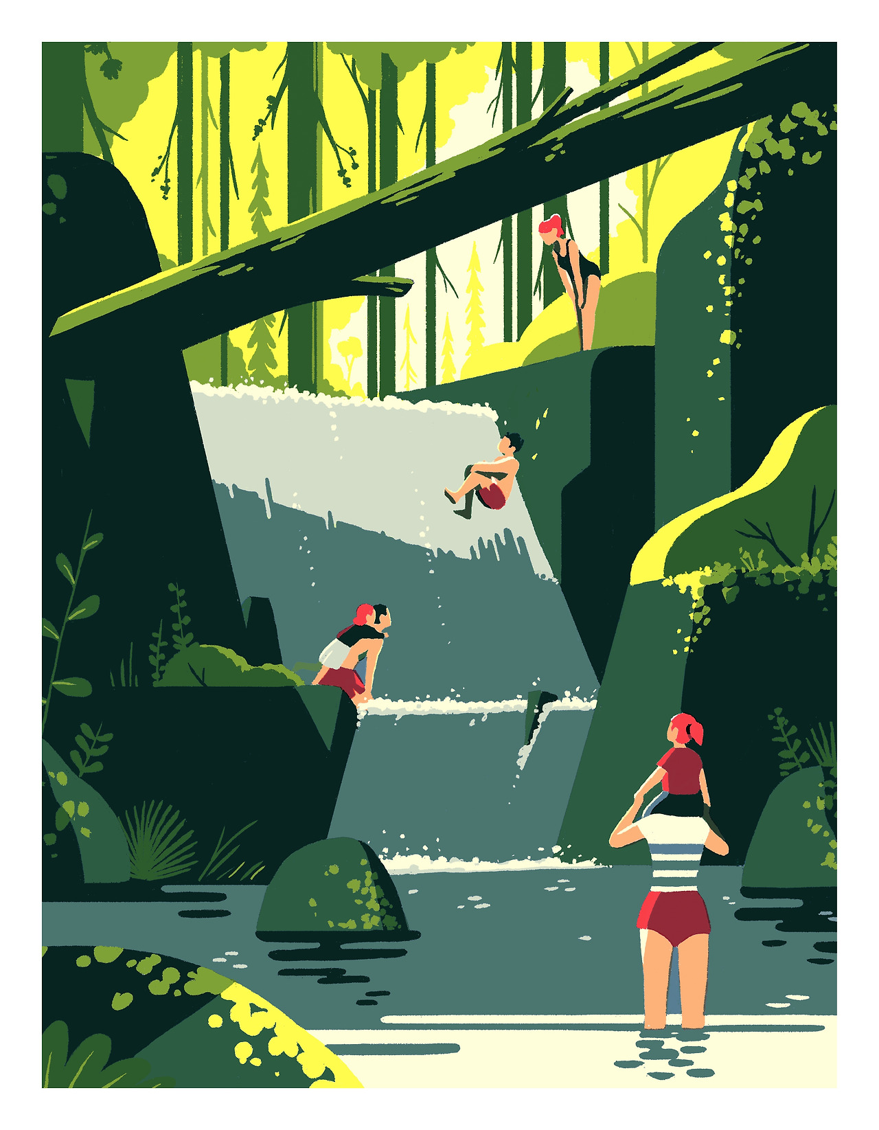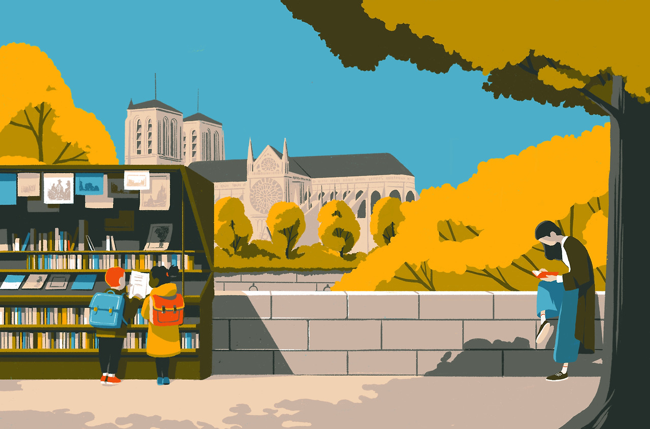 파리에서 나고 자란 톰 오고마는 일러스트레이터보다 스토리텔러라는 말이 더 어울리는 작가다. 그의 일러스트 속 광활한 자연과 건조한 도시에서는 얼굴 없는 자그만 사람들이 살아간다. 익숙한 풍경은 단순한 형태를 벗어나 몽환적으로 거듭난다. 미지의 세계로 이어진 길처럼, 오래된 기억을 되살리는 이야기처럼, 톰 오고마는 그림 그 너머를 상상하게 만든다.